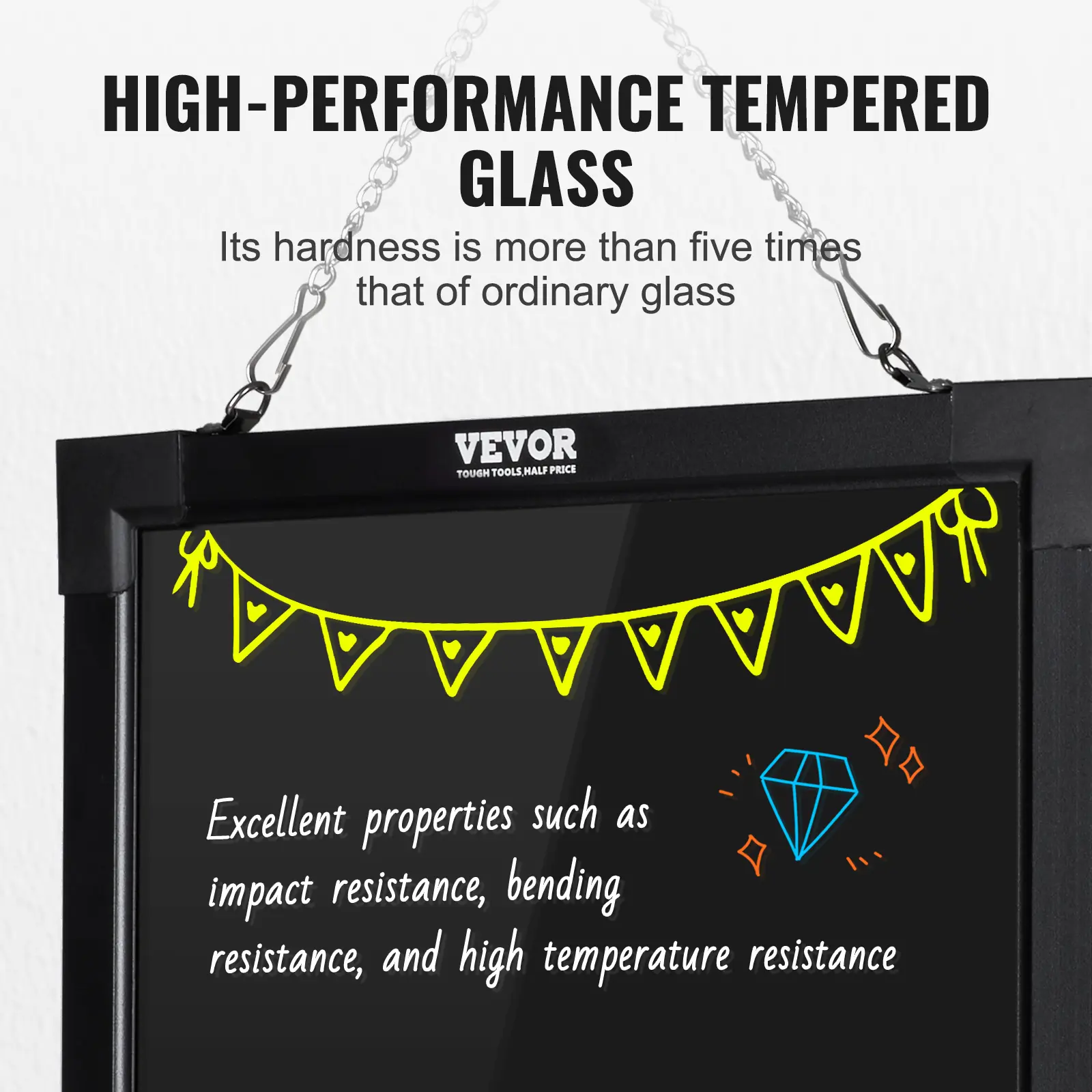 • High-performance Tempered Glass: Tempered glass is a strengthened glass that is more than five times harder than ordinary glass. Fluorescent writing board also possesses excellent properties such as impact resistance, bending resistance, and high temperature resistance. Compared to previously used acrylic boards, tempered glass provides superior effects.