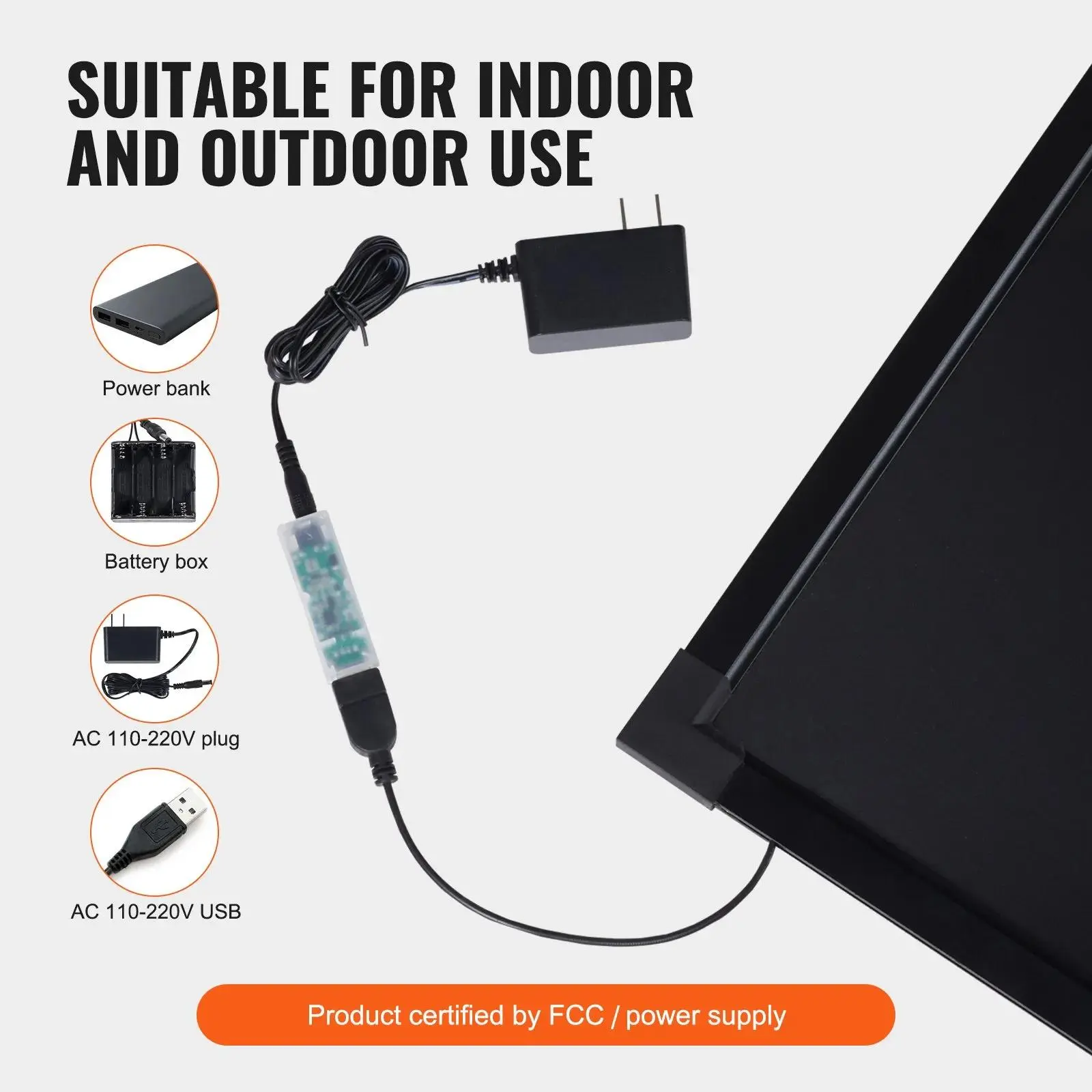 Offers 4 power supply options: AC 110-220V plug/USB, power bank/battery box. FCC certified power supply ensures stable performance. Suitable for indoor and outdoor use, eliminating power concerns.