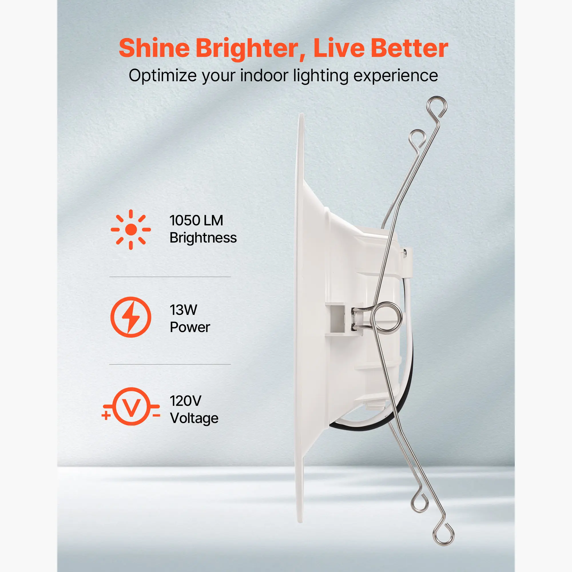 • High Brightness, Low Energy: Light up your space with up to 1050 lumens of powerful illumination, while keeping energy costs low. This retrofit LED recessed lighting is built for long-term use, combining high output with energy-saving efficiency