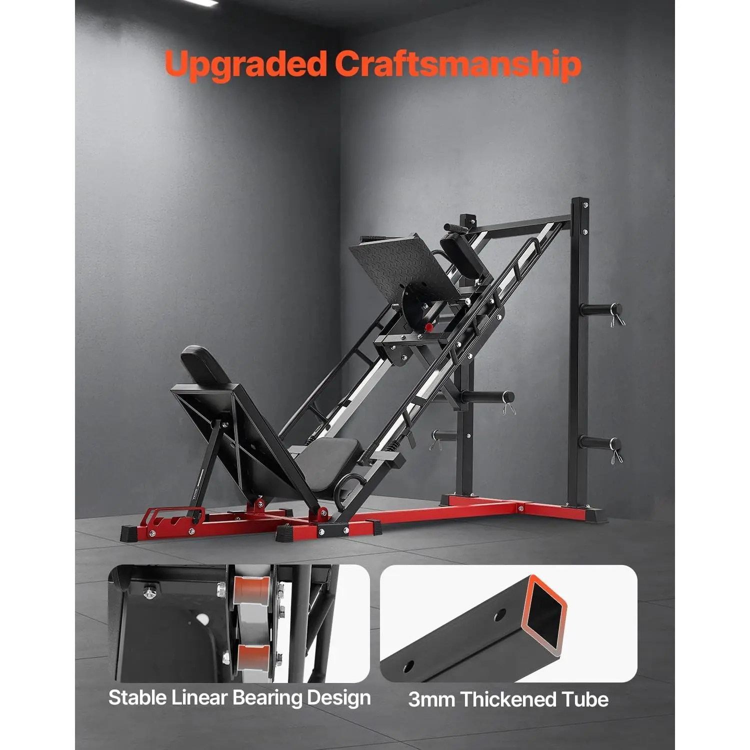 VEVOR Leg Press Hack Squat Machine, Adjustable Leg Press Combo with Linear Bearing and Weight Storage, Lower Body Special for Home Gym, Leg Exercise Equipment for Quads, Hamstring, Glutes, Calve