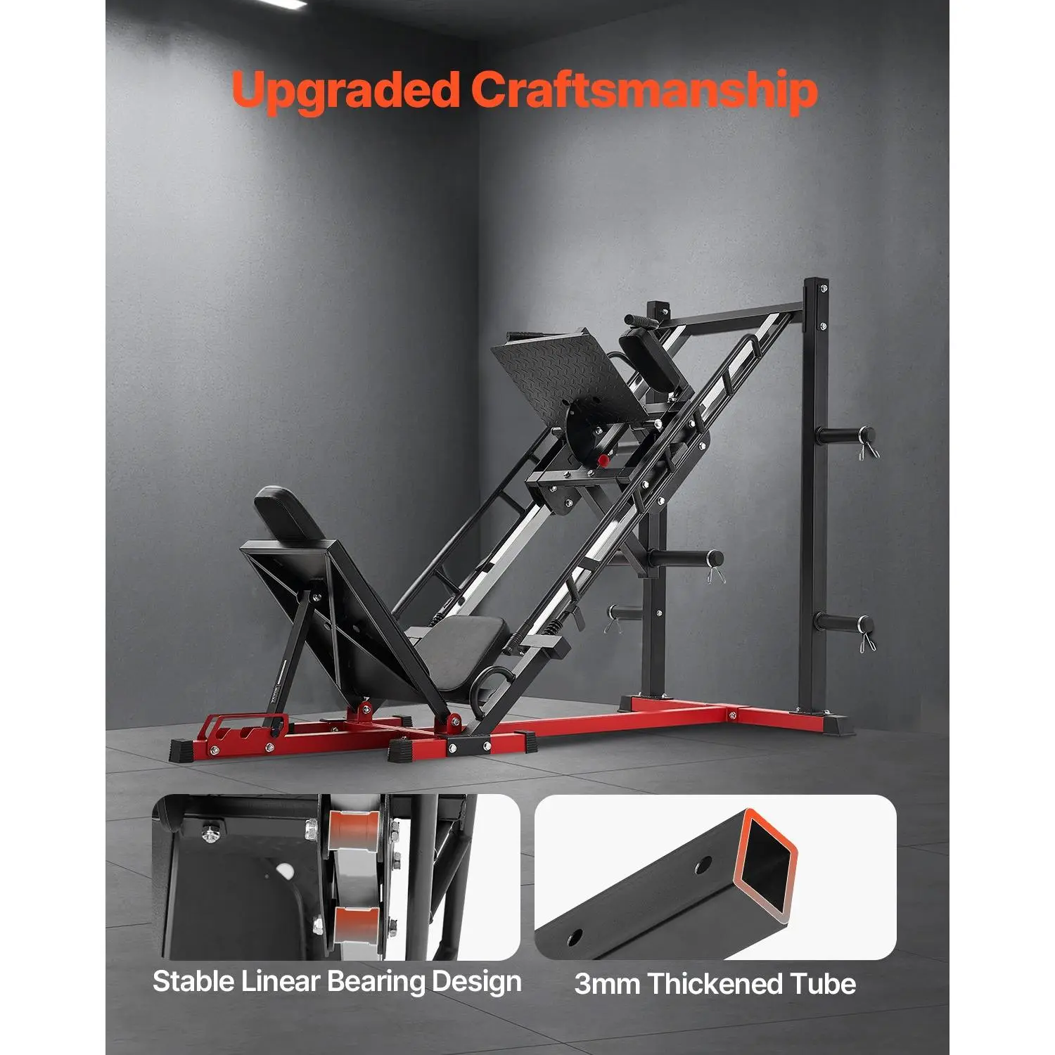 High Load Capacity, Intense Training: 2000lbs larger load-bearing, leg press hack squat machine is matched with 2in standard weight posts, satisfying with the intensity of different weight workout, burning parts of fat, shaping your figureRock-Solid Stability, Durable: Made of premium carbon steel and tailored for stable linear bearing design, specialty hack squat machine is equipped with 3mm thickened tube, durable, extending service life without frequent replacement7-Position Adjustment, Enjoyed by All: Designed with 3 gears adjustable backrest and 4 levels adjustable safety limiter, customed workout position on your own, adjustable leg press machine meets diverse workout needs of all familiesFlexible Backrest: Removable backrest design makes switching exercise positions effortless instantly, while providing stable support and comprehensive protection for your bones and joints.Leg exercise machine ensures that every workout is reassuringAll-Around Body Shaping Machine: Home gym leg day equipment can realize hack squat / leg press / calf raise / reverse squat, which can make the waist, hips, and legs show attractive figureVEVOR Leg Press Hack Squat Machine, Adjustable Leg Press Combo with Linear Bearing and Weight Storage, Lower Body Special for Home Gym, Leg Exercise Equipment for Quads, Hamstring, Glutes, Calve