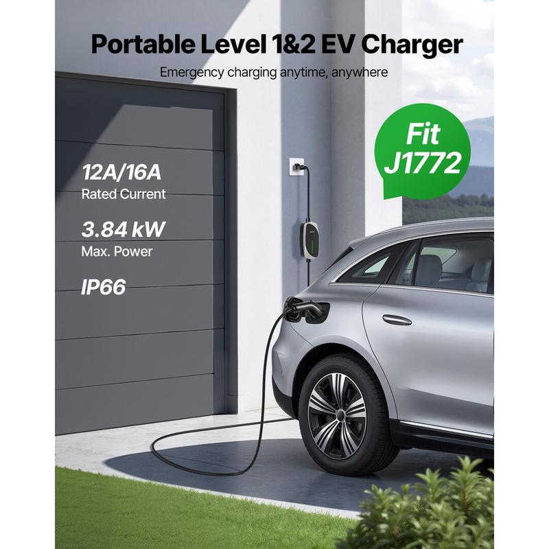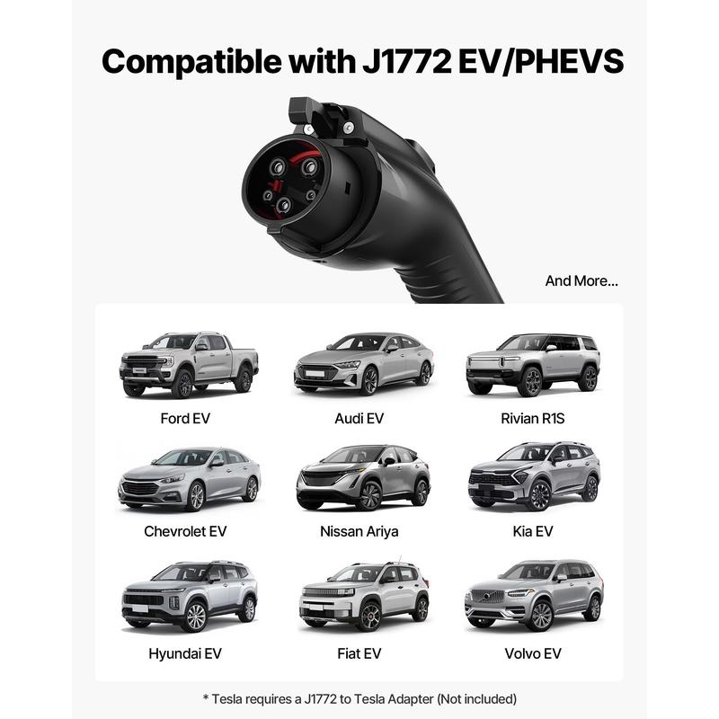 • Universal J1772 Compatibility: Compatible with multiple electric and plug-in hybrid vehicles. This level 1/2 EV charger features a 25 ft cable, easily reaching across driveways or garages. Ideal for home with multiple EVs or shared charging stations