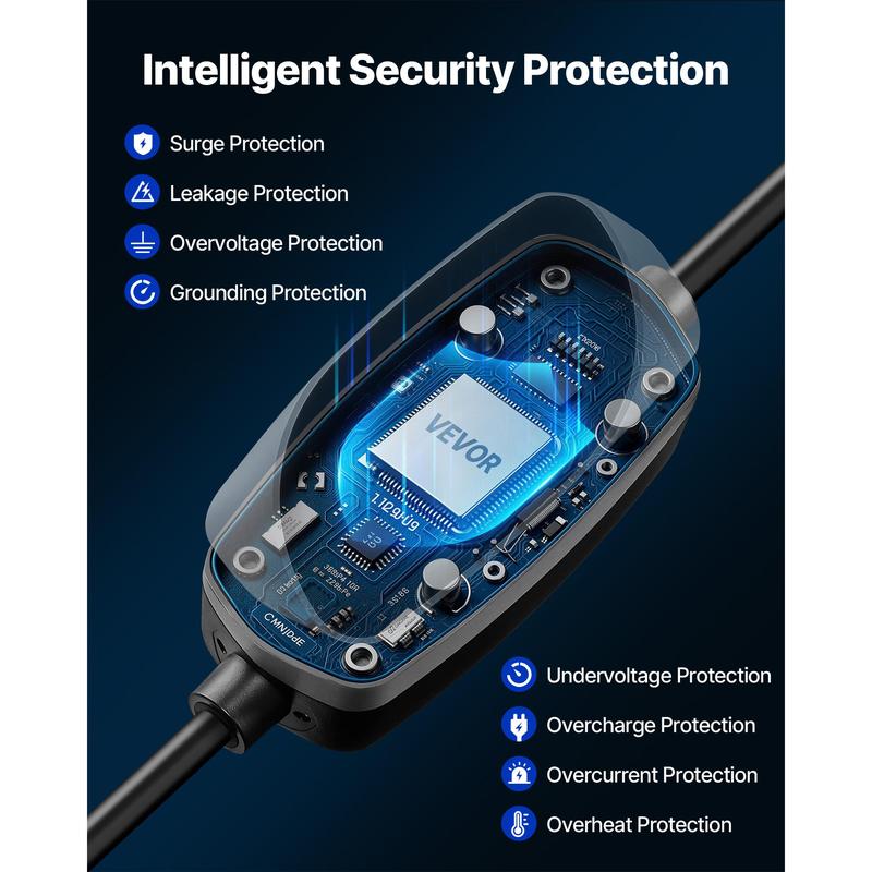 • Charge Securely Every Time: Equipped with an intelligent chip, this portable EV charger provides complete protection from surge, leakage, grounding, overvoltage, undervoltage, overcurrent, overheating, and overcharging