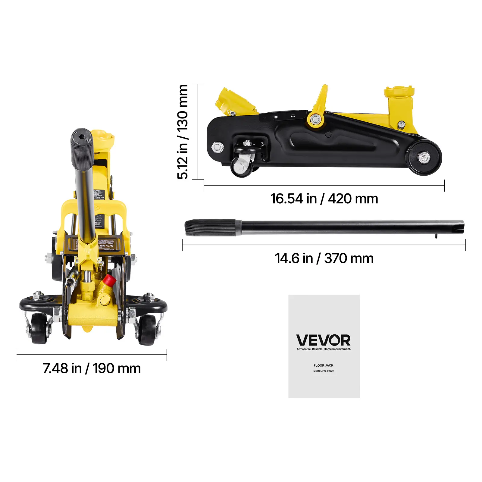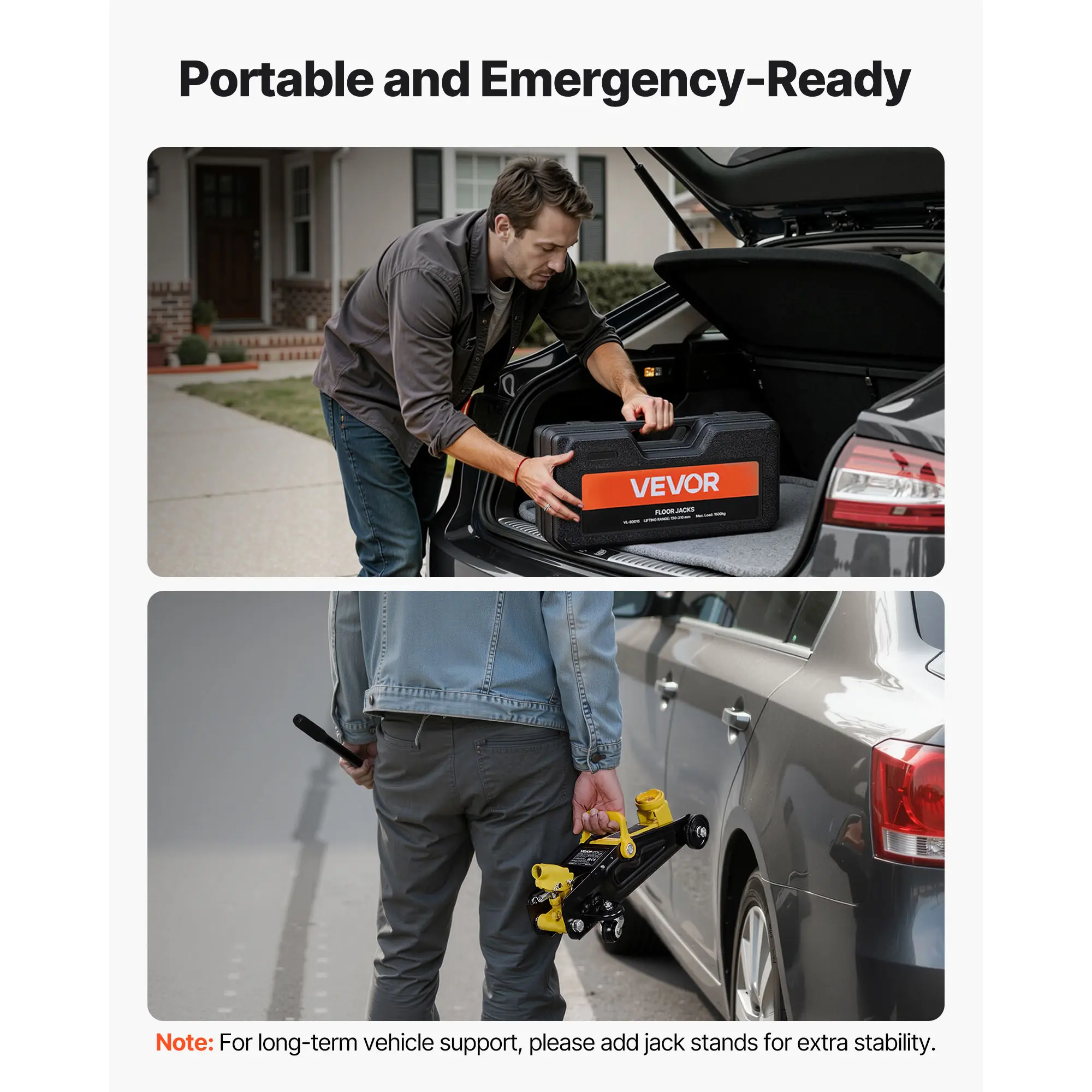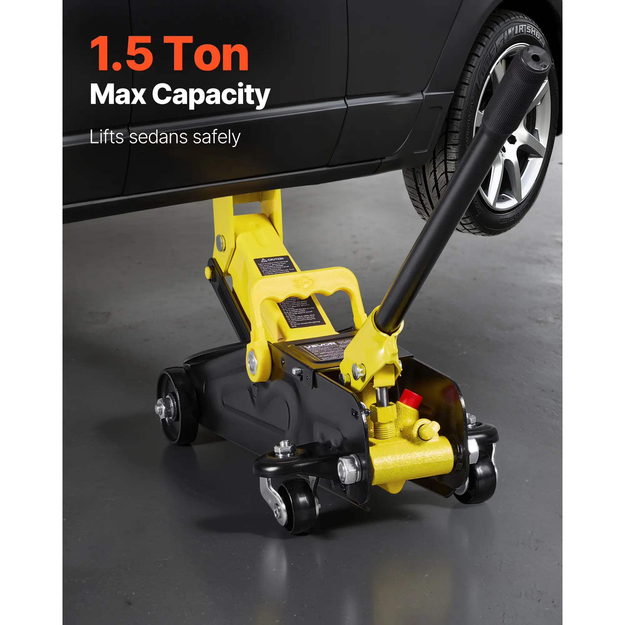 • 1.5T Maximum Load: Our floor jack supports up to 1.5 tons (3300 lbs), ideal for lifting sports cars and sedans. It's reliable for home maintenance, tire changes, brake checks, exhaust or suspension work. Note: For extended support, use with jack stands