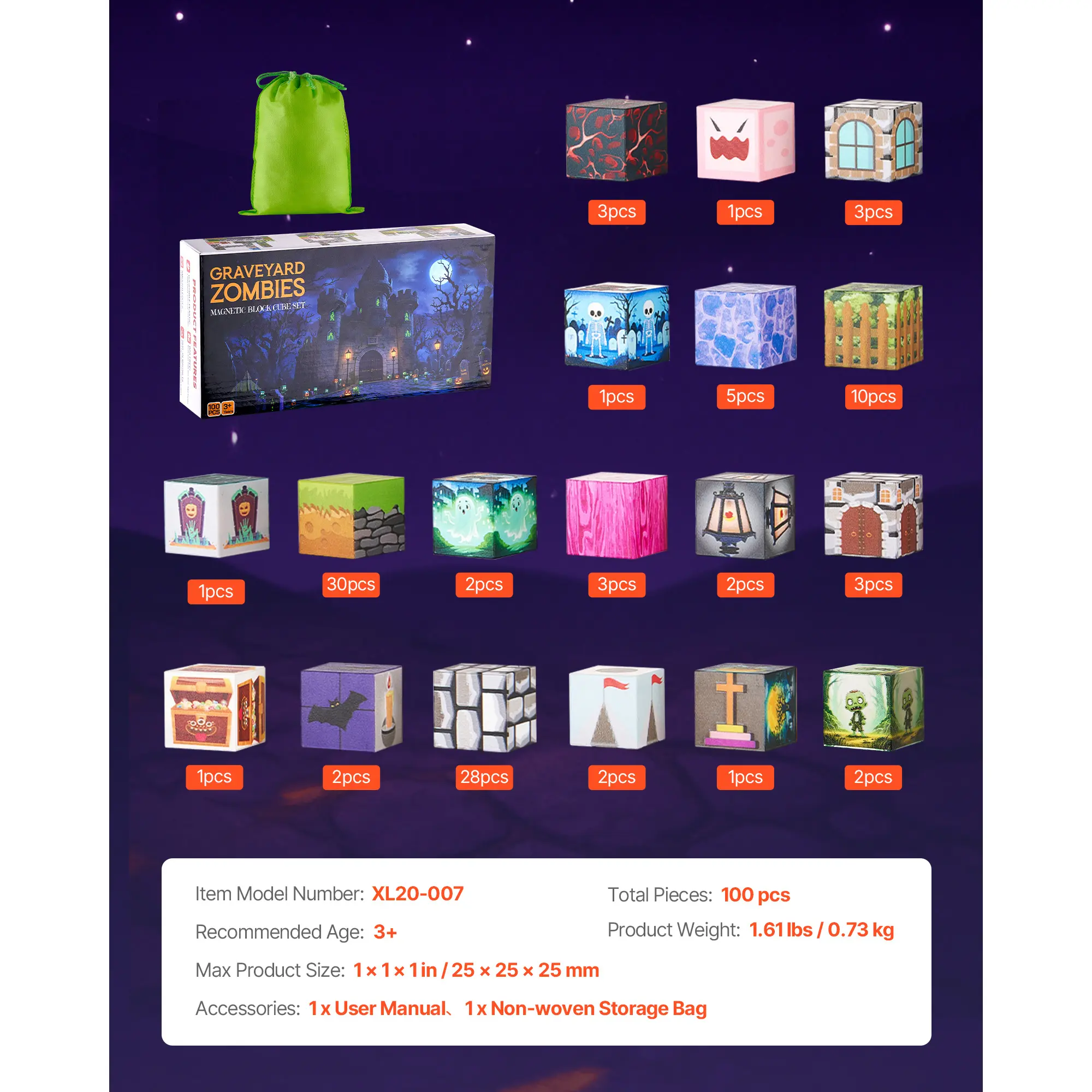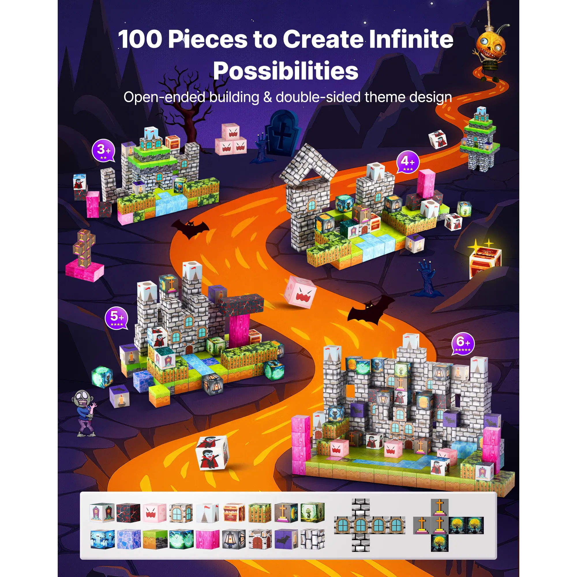 • Freeform Building & Dual-sided Themes: With 100 magnetic blocks and dual-sided themes, your child can create flat designs, 3D structures, and even iconic recreations! Mix and match with other magnet blocks sets to build new stories