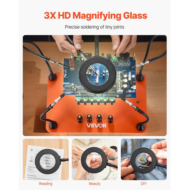 • 2-in-1 Upgraded Helping Hands Soldering Station: It includes a 3X magnifying lamp for clear, accurate detail work, making it suitable for close-up tasks.
