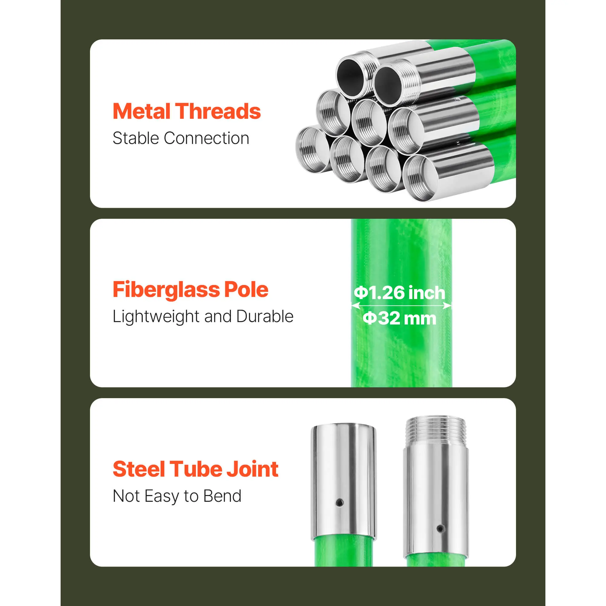 • Stable Connection: Metal-threaded connections ensure secure assembly. Lean the first section on a tree, then add additional sections. The recommended length for trimming is 20ft, about 6 poles. Wearing back support is suggested for extended use