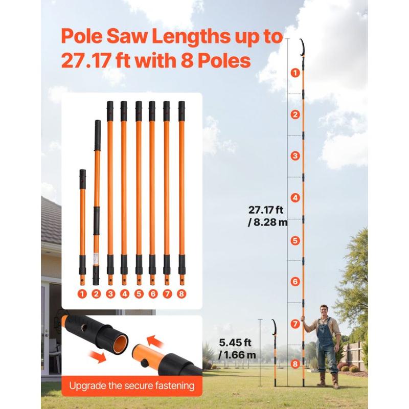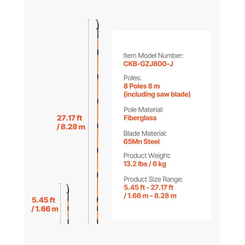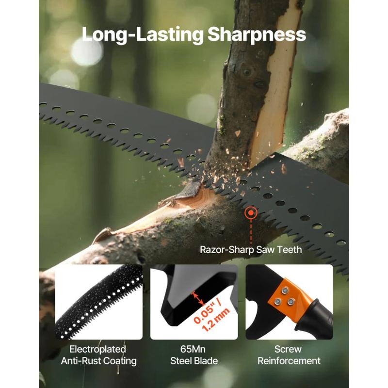 VEVOR Manual Pole Saw, 4.46 - 26.4 ft Extendable Tree Pruner, Sharp 65Mn Steel Blade, Lightweight Fiberglass Handle Pole, Two Double - Hook Saws for High Branch Trimming, Pruning Tool for Palms, ShrubsVEVOR Manual Pole Saw, 4.46-26.4 ft Extendable Tree Pruner, Sharp 65Mn Steel Blade, Lightweight Fiberglass Handle Pole, Two Double-Hook Saws for High Branch Trimming, Pruning Tool for Palms, Shrubs Fiberglass Pole Sharp Saw Blade Rust-Proof Coating Quick and Simple Assembly Wide