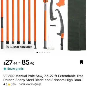 Coming up short? You'll love our pole tree pruner as much as we do! VEVOR's extendable tree saw reaches up to 27 ft in height. It has a sharp blade for efficient trims, a sturdy connection, and 8 detachable poles for hard-to-reach tasks. It is perfect for trimming high and low branches.