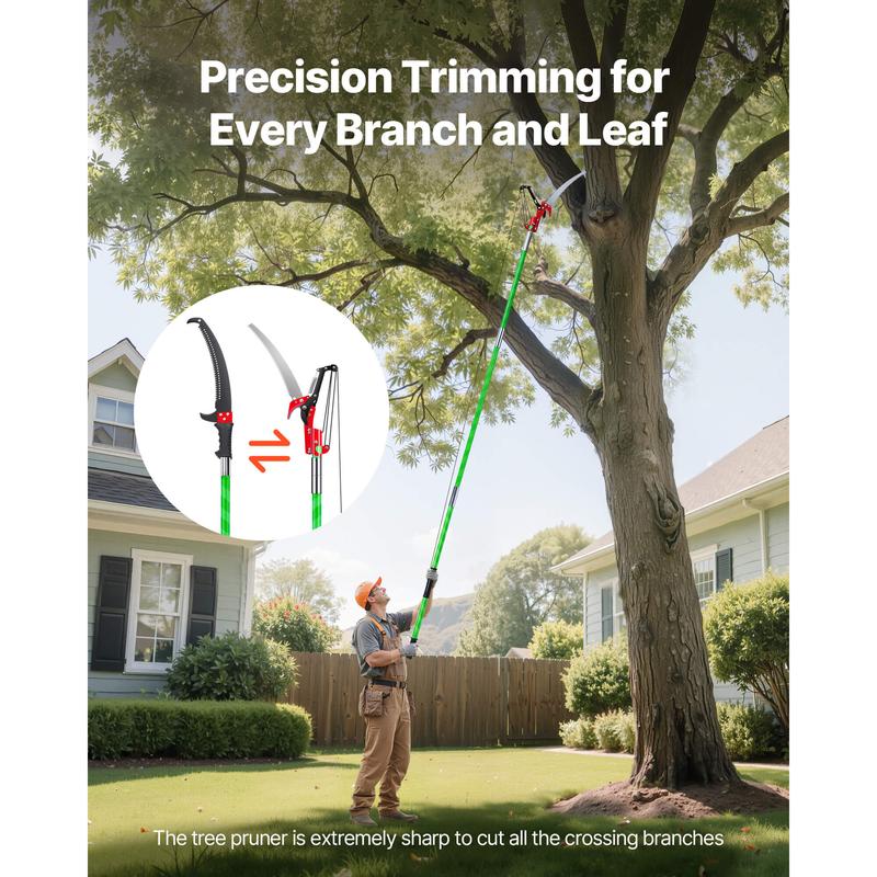 • Easily Trim High Branches: Equipped with 8 adjustable sections, this manual pole saw extends up to 27ft, allowing ladder-free trimming of high branches. It is ideal for pruning dead or low-hanging branches, maintaining your yard or garden