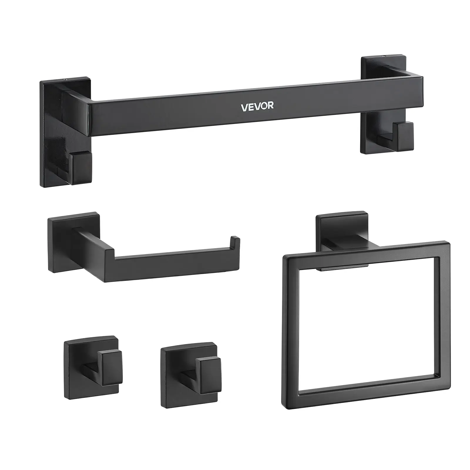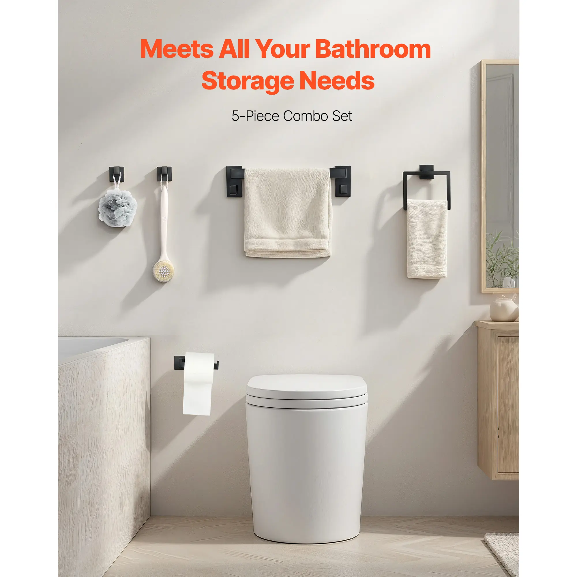 • Versatile Combination Set: This 5-piece bathroom hardware set includes a 15.75-inch towel bar with hooks, a towel rack, a toilet paper holder, and 2 robe hooks. The well-designed combination meets all your bathroom storage needs without leaving any piece unused. The towel bar features 2 additional hooks for extra storage, making it even more practical