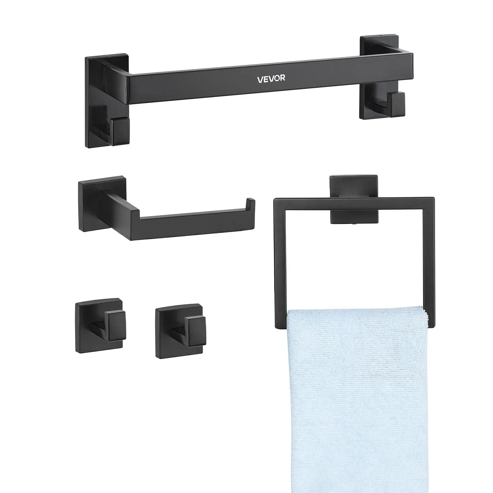 • Versatile Combination Set: This 5-piece bathroom hardware set includes a 15.75-inch towel bar with hooks, a towel rack, a toilet paper holder, and 2 robe hooks. The well-designed combination meets all your bathroom storage needs without leaving any piece unused. The towel bar features 2 additional hooks for extra storage, making it even more practical