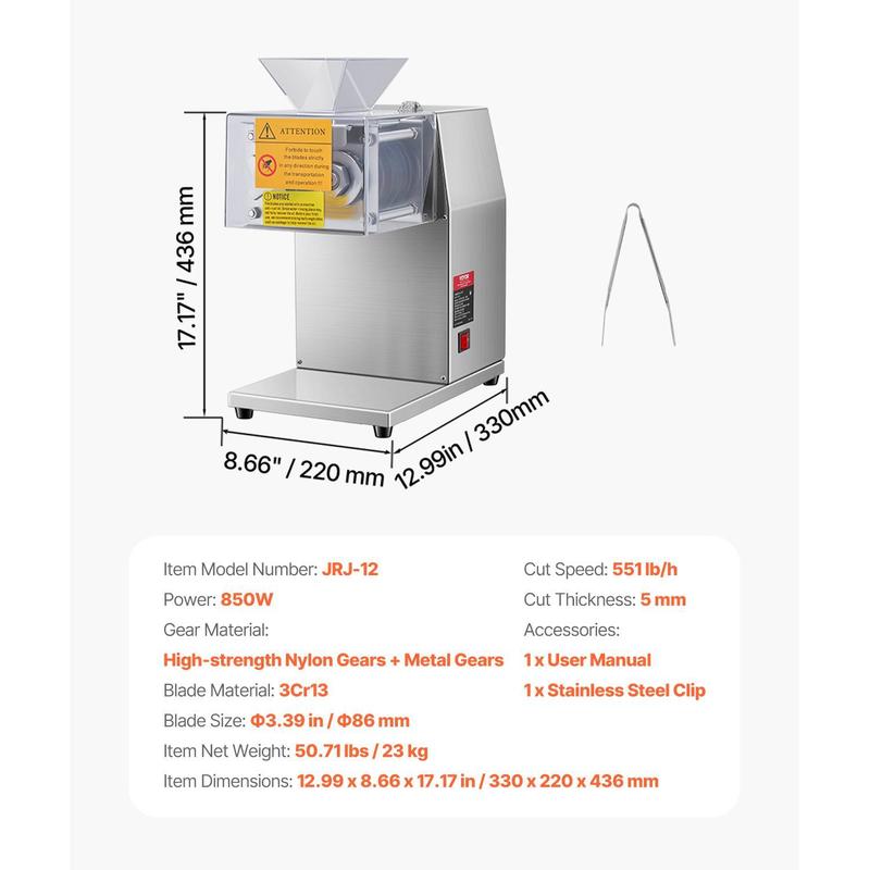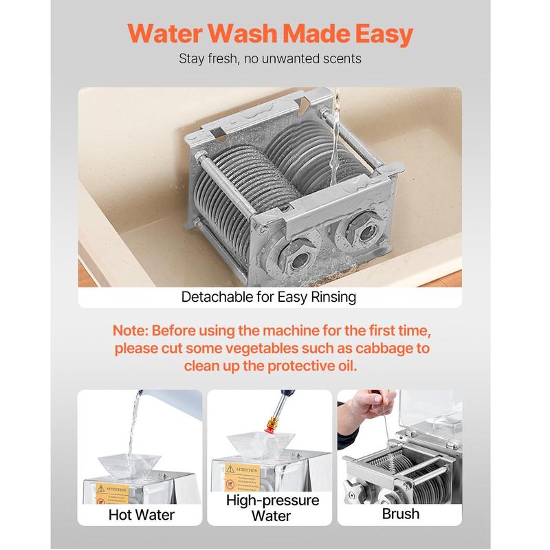 • Effortless Cleaning & Care: Our meat cutter cutting machine is easy to clean and maintain. The blades are coated with protective rust-proof oil. Since water rinsing alone may not fully clean up the oil, please cut some vegetables, such as cabbage, to clean up the protective oil before your first use.