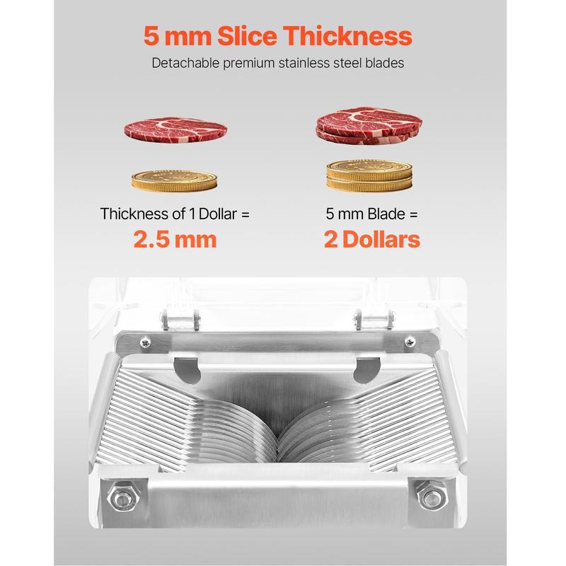• Detachable Blades for Easy Slicing: The stainless steel blade set is built to last and is easy to clean. With a sharp Ф86 mm blade and a 5mm slice thickness, you can enjoy quick, clean slices without worrying about jams or leftover meat. Need a different thickness? Simply detach and replace the blades as needed! Note: This item only comes with 5 mm blades.