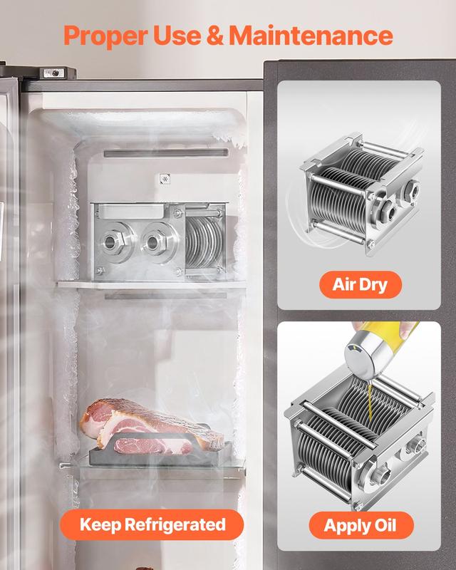 Premium Stainless Steel Blades 🌟- 36 Sharp, Thin Blades: Ensures smooth, clean cuts without leftover meat.- Stainless Steel Spacer: Helps keep the machine running steadily and efficiently.