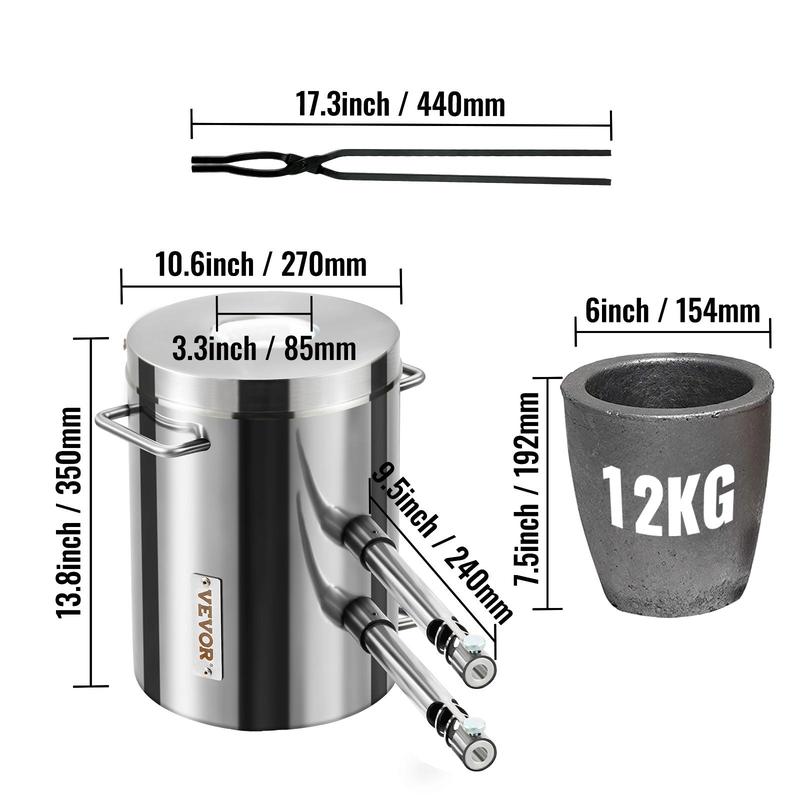 • Stainless Steel Structure: Our propane furnace is crafted from robust stainless steel, making it more durable and long-lasting. The upgraded cover is non-welded and integrated. It is also equipped with a high-density graphite crucible. This 12kg large capacity means you can melt 26kg gold, 14kg silver, 12kg copper, or 3.6kg aluminum. What are you going to make first?