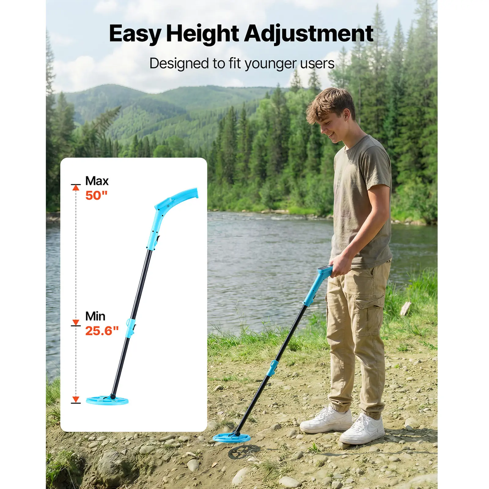 • Adjustable for Younger Users: Designed for young explorers, this professional gold detector comes with a 25.6-36.6 in adjustable handle to fit different ages, reduce arm strain, and make treasure hunting easier and more fun