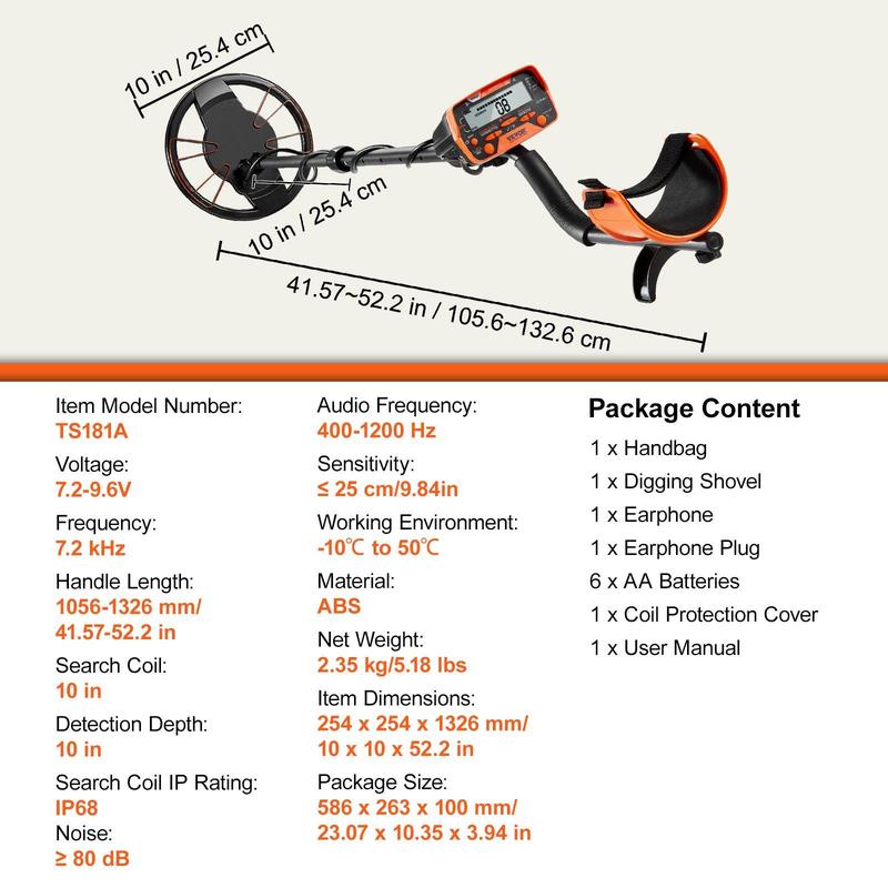 ·Everything You Need: The medal detective comes with a wired earphone that allows you to hear the signal in noisy environments and six batteries to extend the exploration time. It also includes a handbag, digging shovel, earphone plug, and coil protection cover. Choose the VEVOR metal detector and start your treasure hunt now!