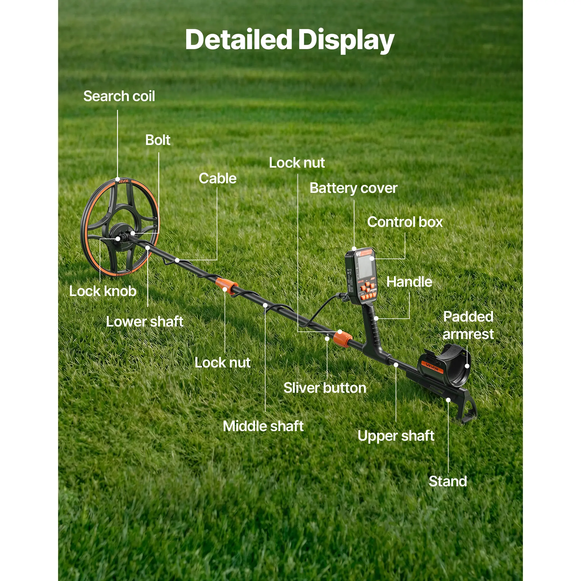 • Adjustable Handle Design: Equipped with a 39-50 in telescopic handle, this professional metal detector fits young adventurers and adults for easy family treasure hunts, while reducing fatigue during long-term use