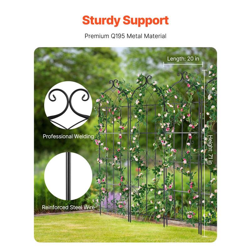5. VEVOR Garden Trellis for Climbing Plants, 71 x 20 in, 4 Packs Rustproof Metal Garden Flower Trellis, Outdoor Climbing Rose Trellis Cucumbers Support, Decorative Clematis Trellis for Courtyards Lawns