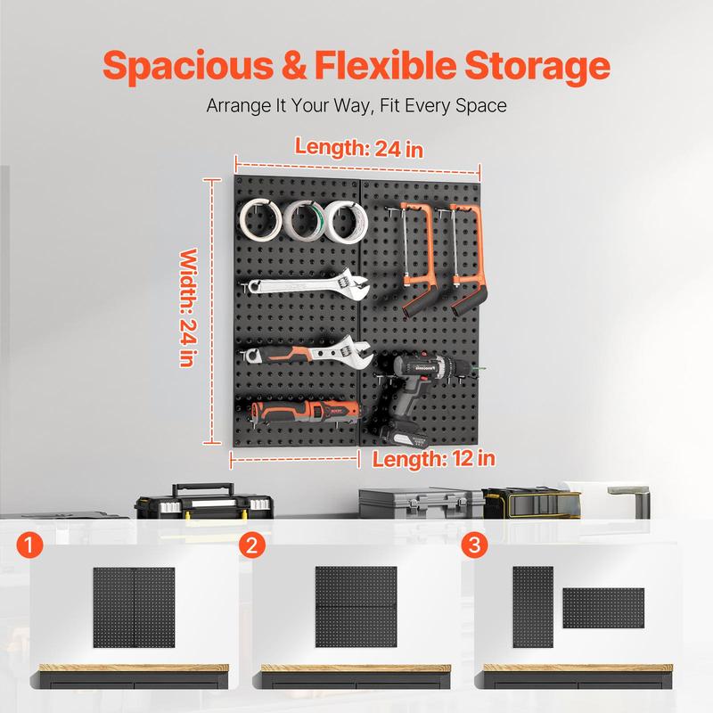 • Organized Storage: With a large 576 square-inch surface, this metal peg board provides ample space to hang and store all your tools. Customize your storage solution by combining various accessories to suit your specific needs.