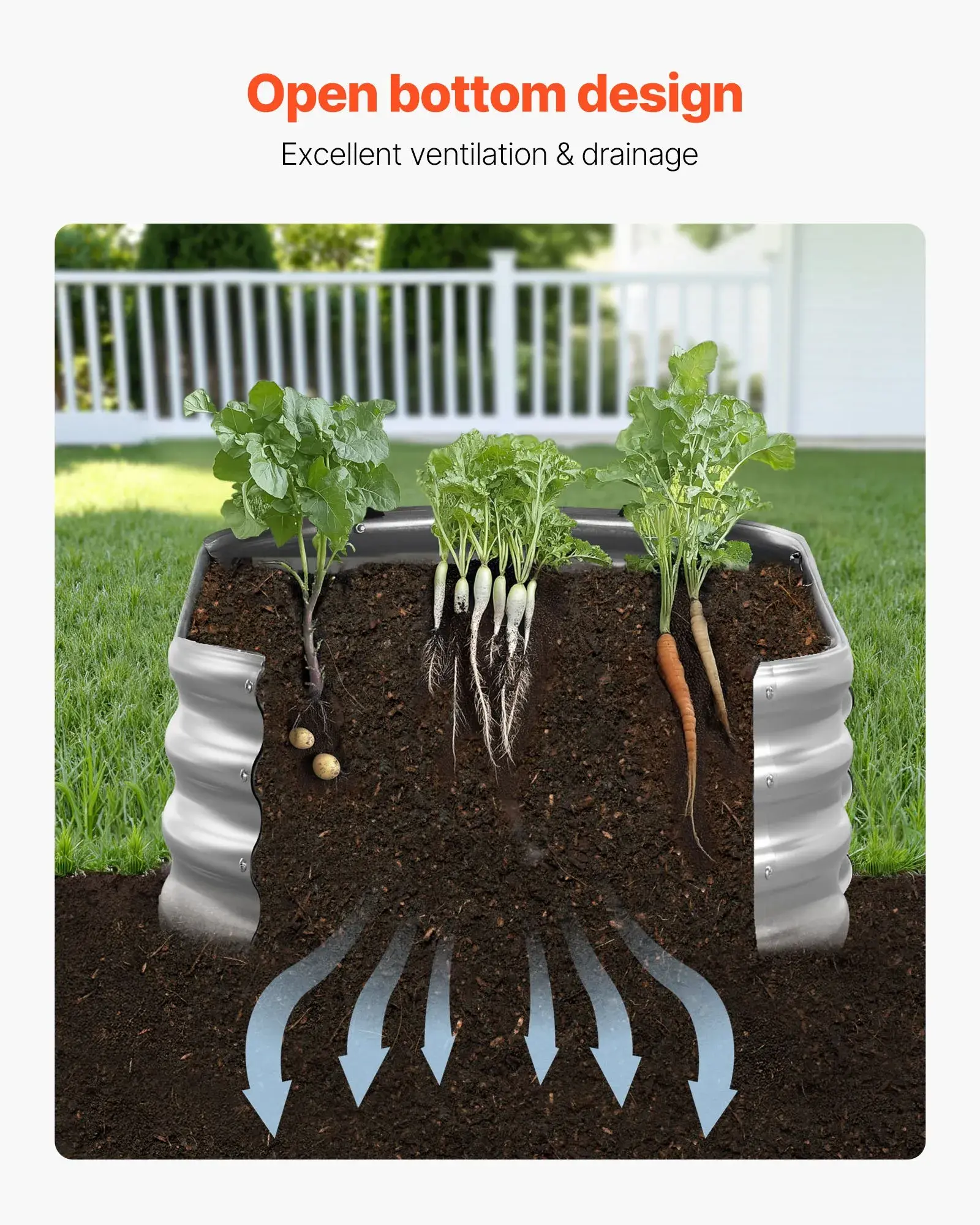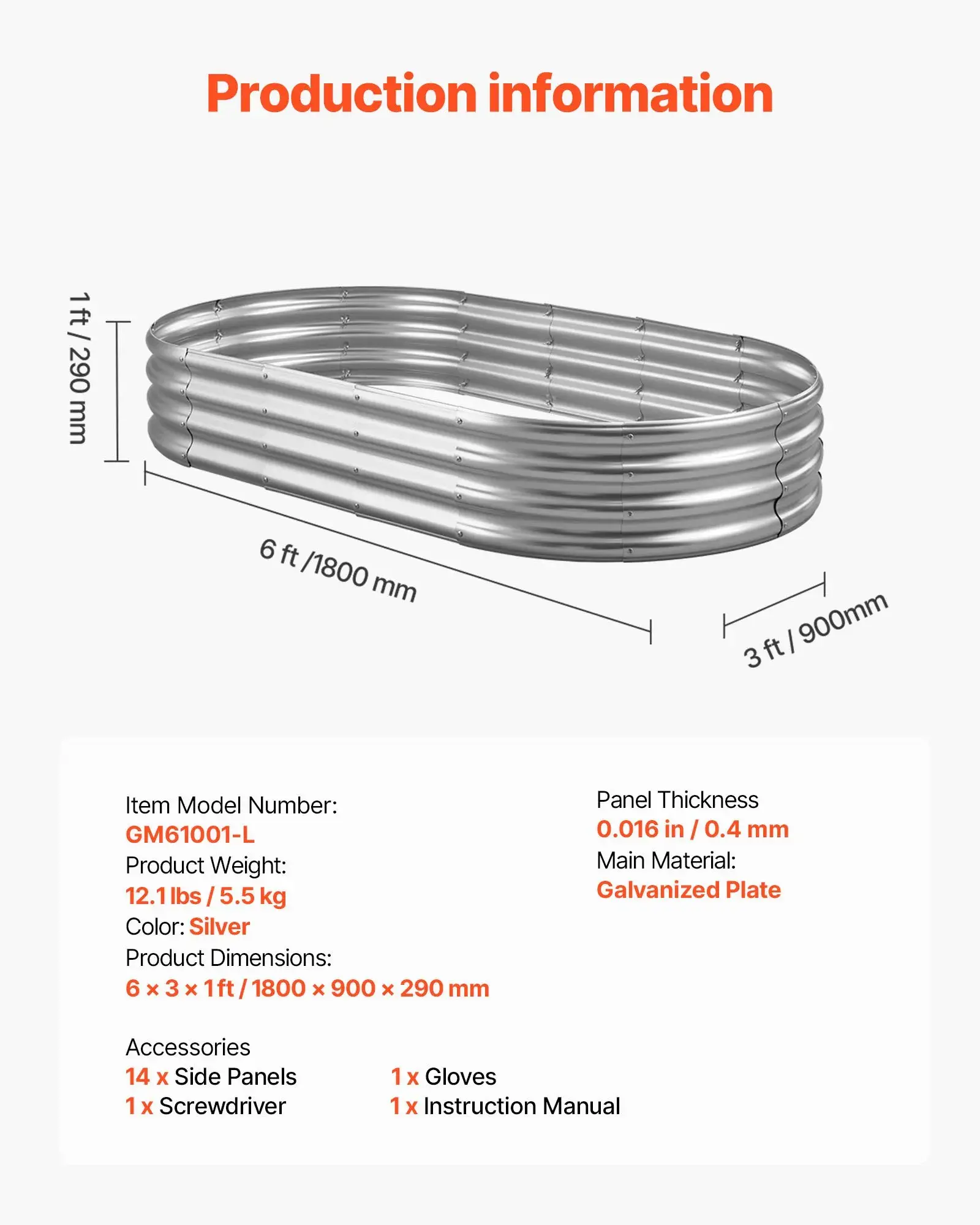 ·Sturdy and Reliable: Made from 0.4 mm rust-proof galvanized panels, this metal raised garden bed is sturdy and built to last. Designed for long-term outdoor use, it is ready to withstand the elements and support your gardening all year round