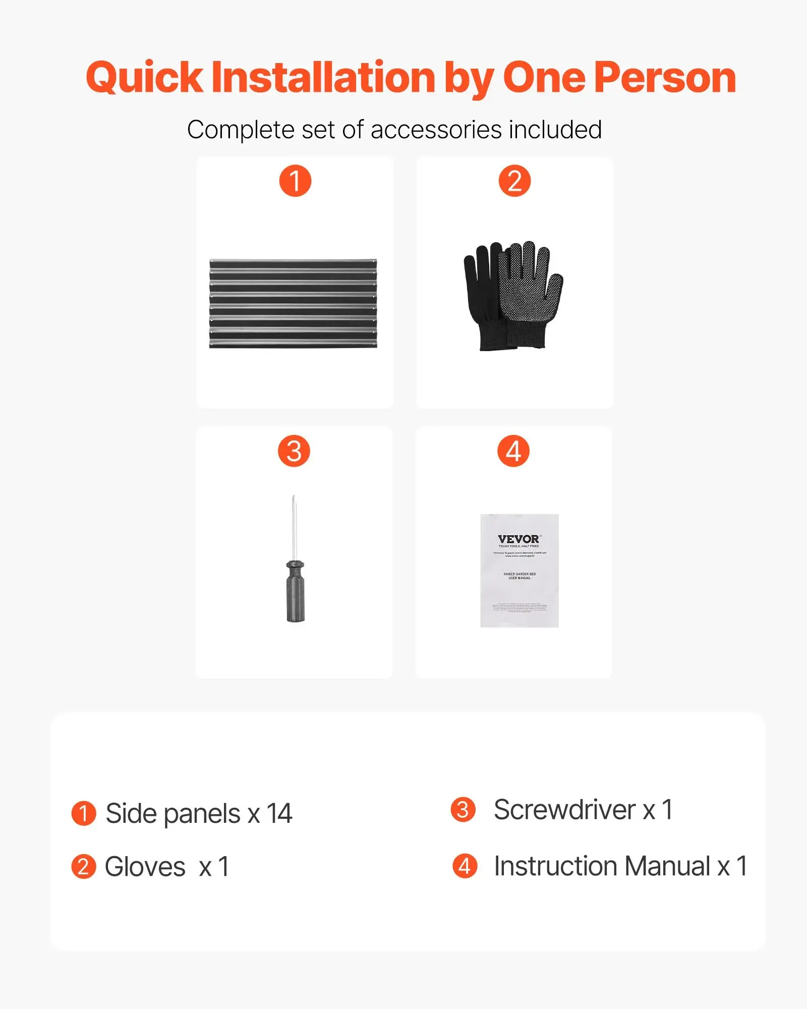 ·What You'll Get: Our raised garden bed includes 14 panels, 1 pair of gloves, 1 screwdriver, and 1 user manual