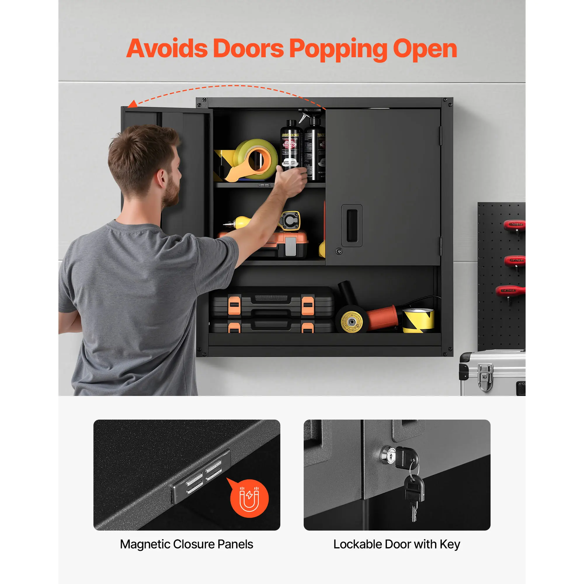 The rail-mount design allows for quick, secure, and flush wall installation. Ideal for diverse settings like garages, kitchens, or workshops, this cabinet can be adjusted to fit your layout. Its versatile installation makes it a flexible addition to any space, ensuring convenience and adaptability.