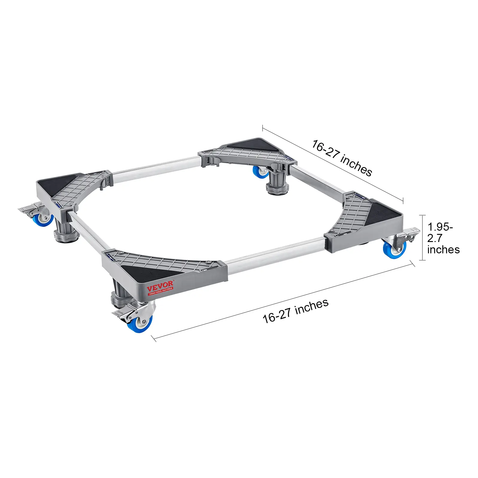 • Easy-to-Adjust and Versatile: The VEVOR mini fridge stand features adjustable steel rods. You can customize the length from 16" to 27", and the 8 support feet ensure flexible height adjustments from 1.95" to 2.7". This incredible adaptability makes it the perfect solution for various appliances and furniture, like washers, dryers, fridges, cabinets, and more.