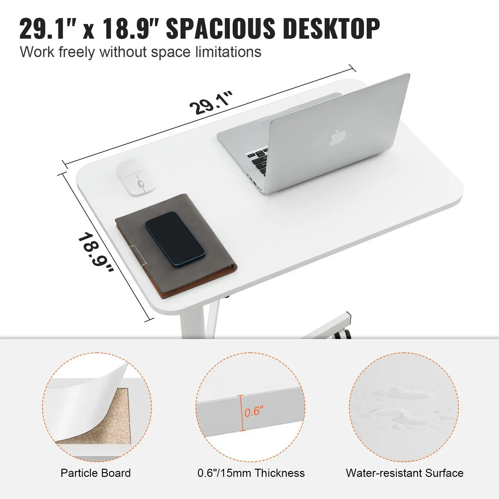 • Spacious Desktop Space: 29.1" x 18.9" super large desktop space provides ample room for all your work needs. Effortlessly accommodate multiple devices like computers, laptops, and folders, and support you to work freely without any space limitations. Whether you're dealing with documents, writing, reading, writing, painting, and more, this mobile sit stand workstation has got you covered.
