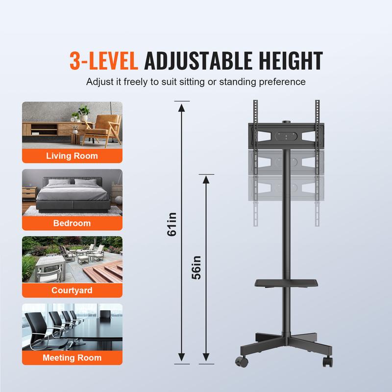 Stand is easy to assemble and use. Wheels make it convenient to move TV around.