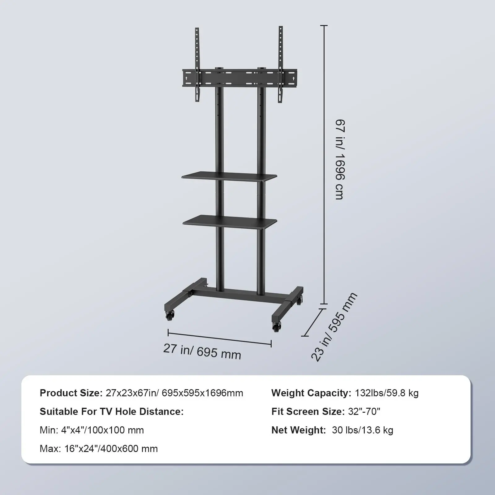 • Universal Compatibility: Designed to accommodate your needs, our tall TV stand mount fits 32-70 inch TVs with a weight capacity of up to 132 lbs. The VESA ranges from 100mm x 100mm to 600mm x 400mm, making it compatible with most brands of TVs.
