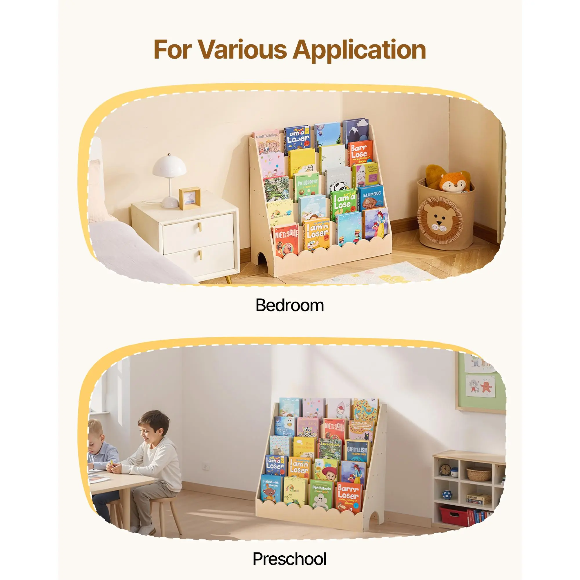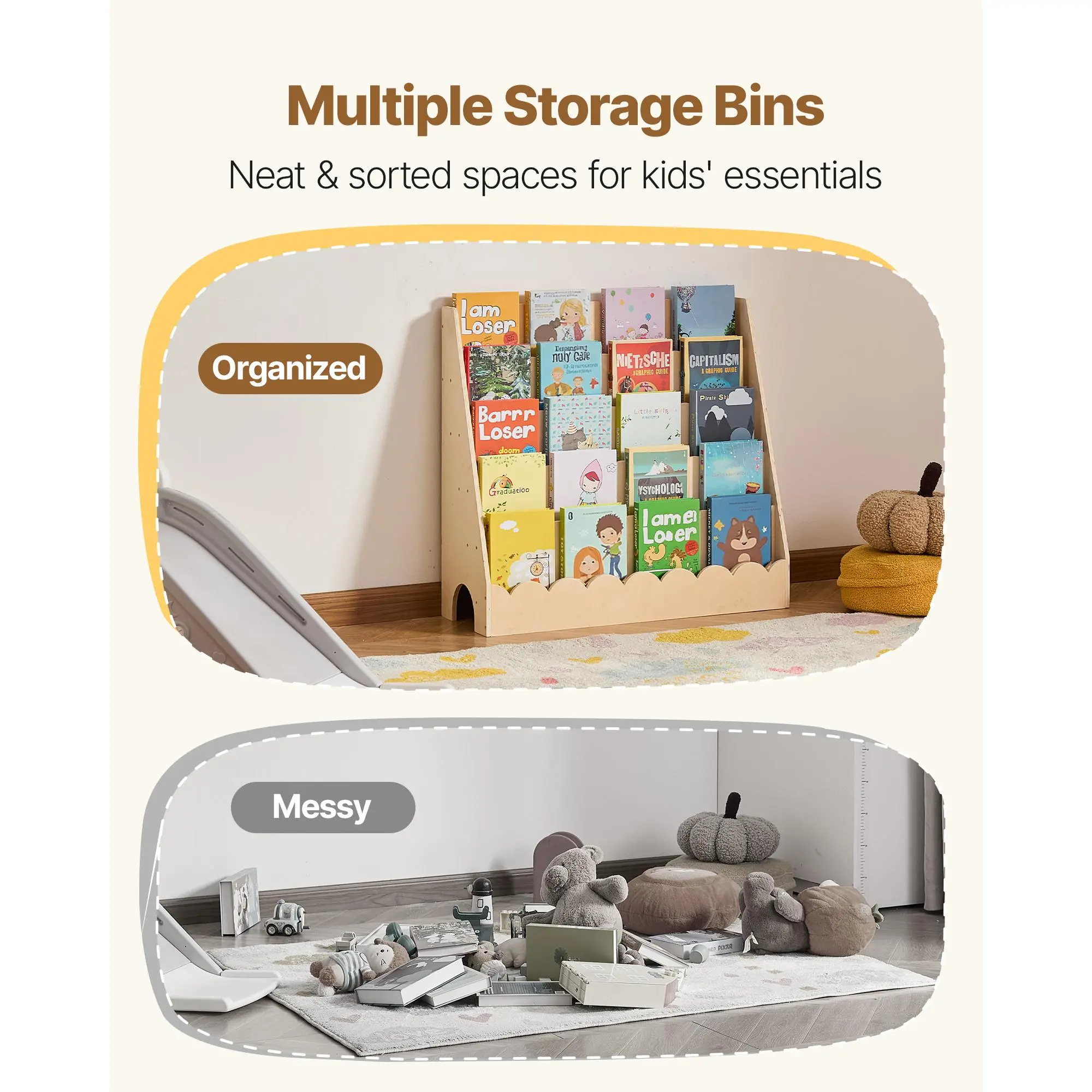 • Streamlined Organization: This scalloped book shelf features 5 compartments. Curved edges and open design keep books, toys, and supplies neatly arranged, helping kids find items easily and build tidy habits from an early age
