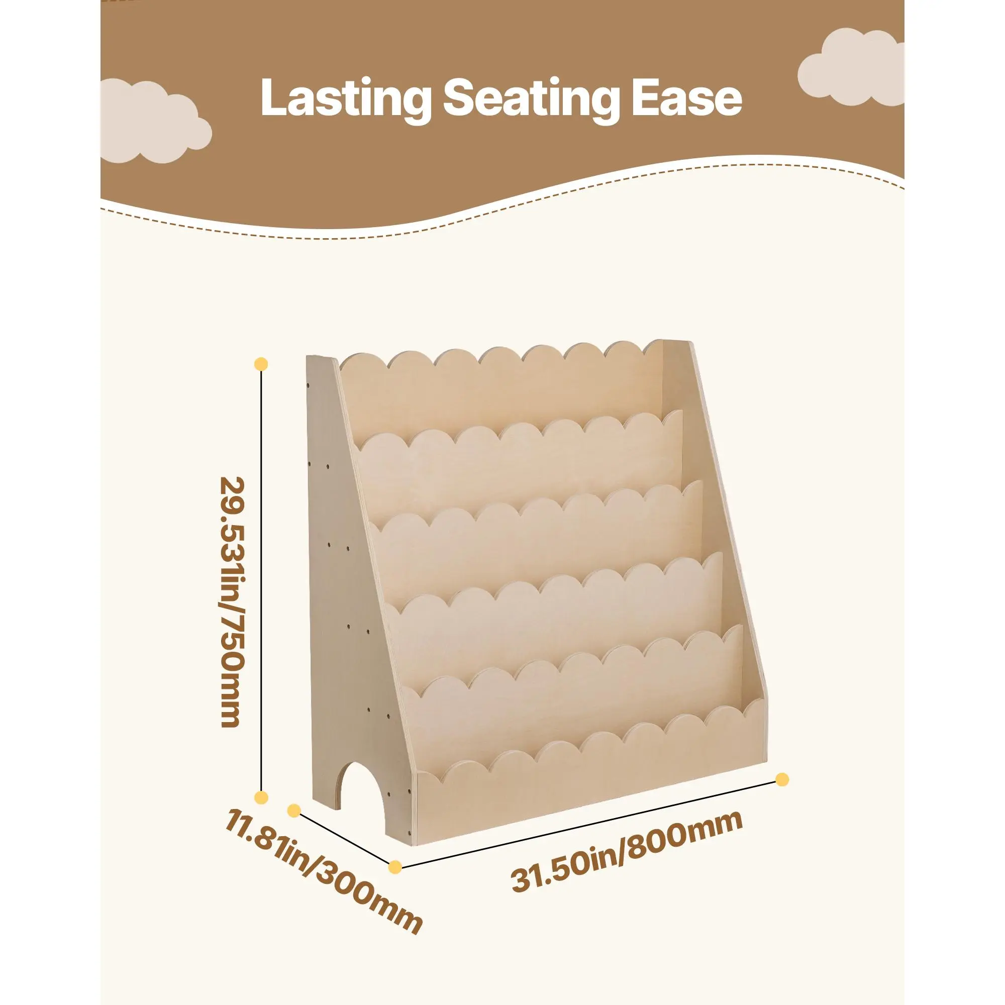 • Caring, Secure Design: Built for durability and reliability. This scalloped bookcase includes an anti-tip kit and rounded edges design to help avoid tipping during use, providing extra peace of mind for parents