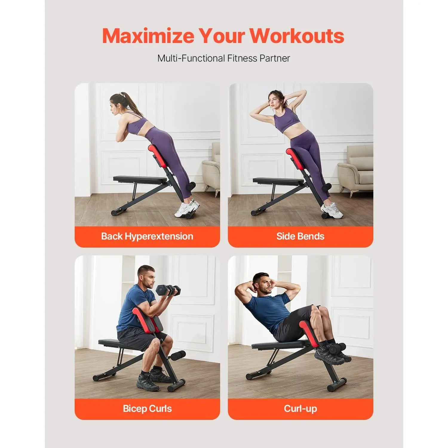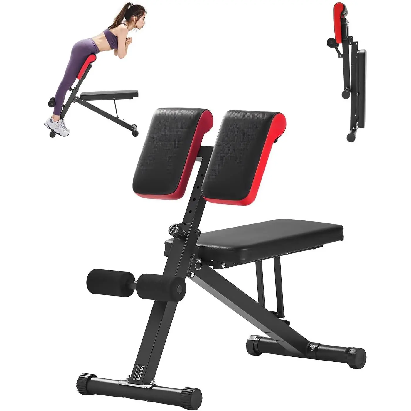 VEVOR Multi-Functional Weight Bench for Full Body Workout, Roman Chair Hyperextension Bench, 330 lbs Adjustable & Foldable Equipment for Back Arm Core Ab Workout, Sit Up Exercise Machine for Home Gym