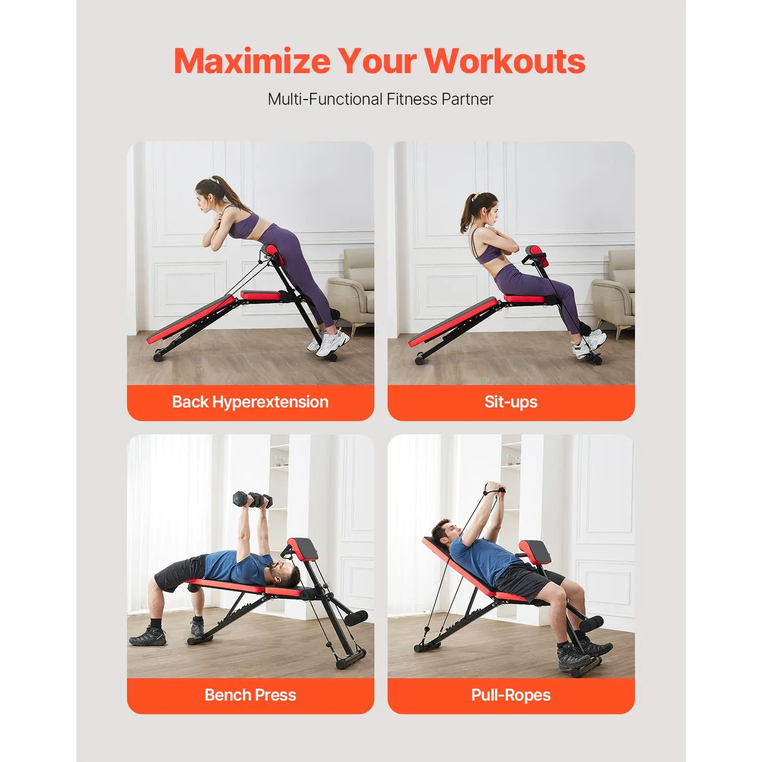 5. VEVOR Multi-Functional Weight Bench for Full Body Workout, , Roman Chair Hyperextension Bench, 770 lbs Adjustable & Foldable Equipment for Back Arm Core Ab Workout, Sit Up Exercise Machine for Home Gym