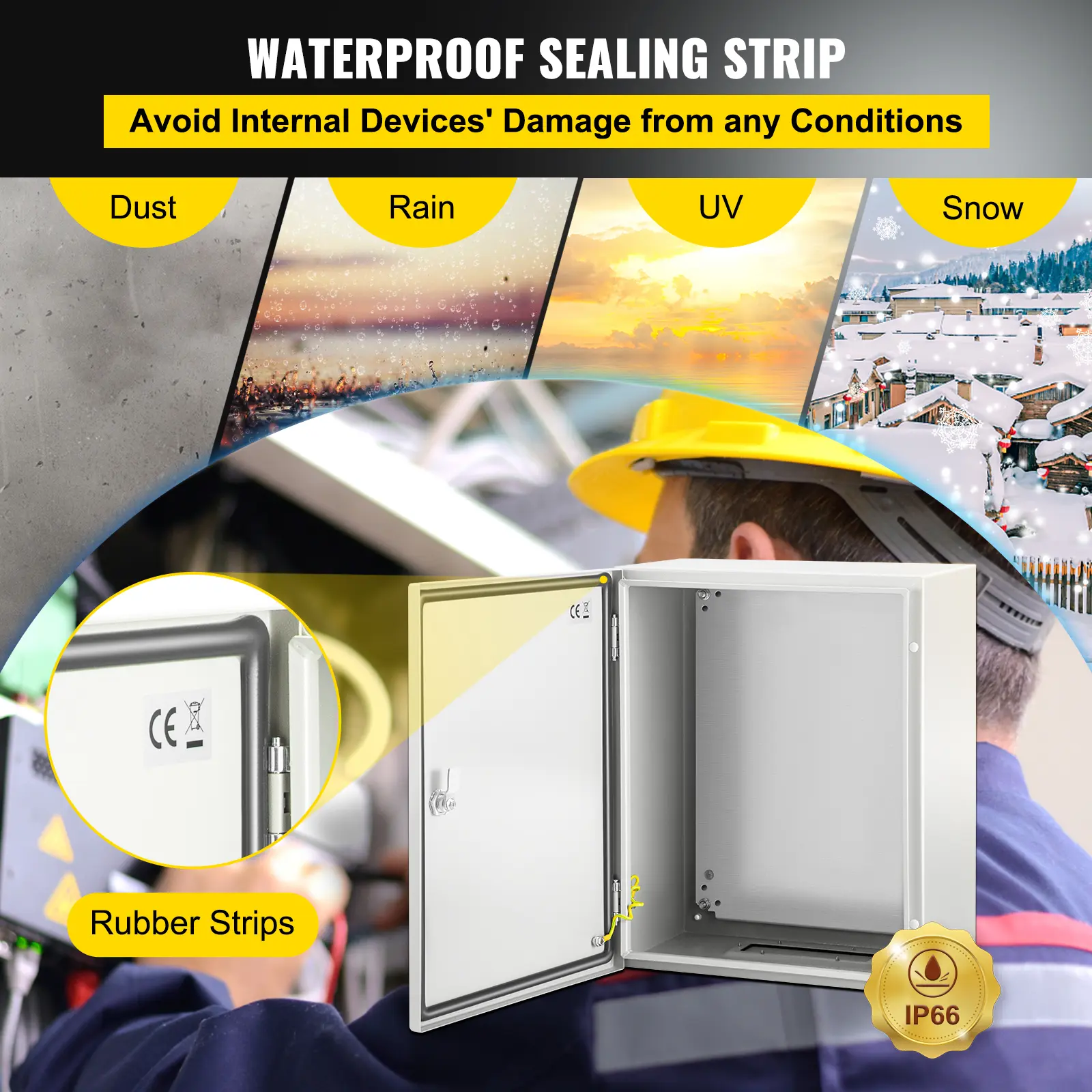• IP66 Waterproof Grade: The sealing strip of foam plastic has excellent sealing performance, and the enclosed box body is guaranteed to reach the protection level of IP66, which can prevent dirt and water from entering the box when the lid is opened. Ideal choice for factories, construction sites, malls, squares, residential areas, courtyards, etc.