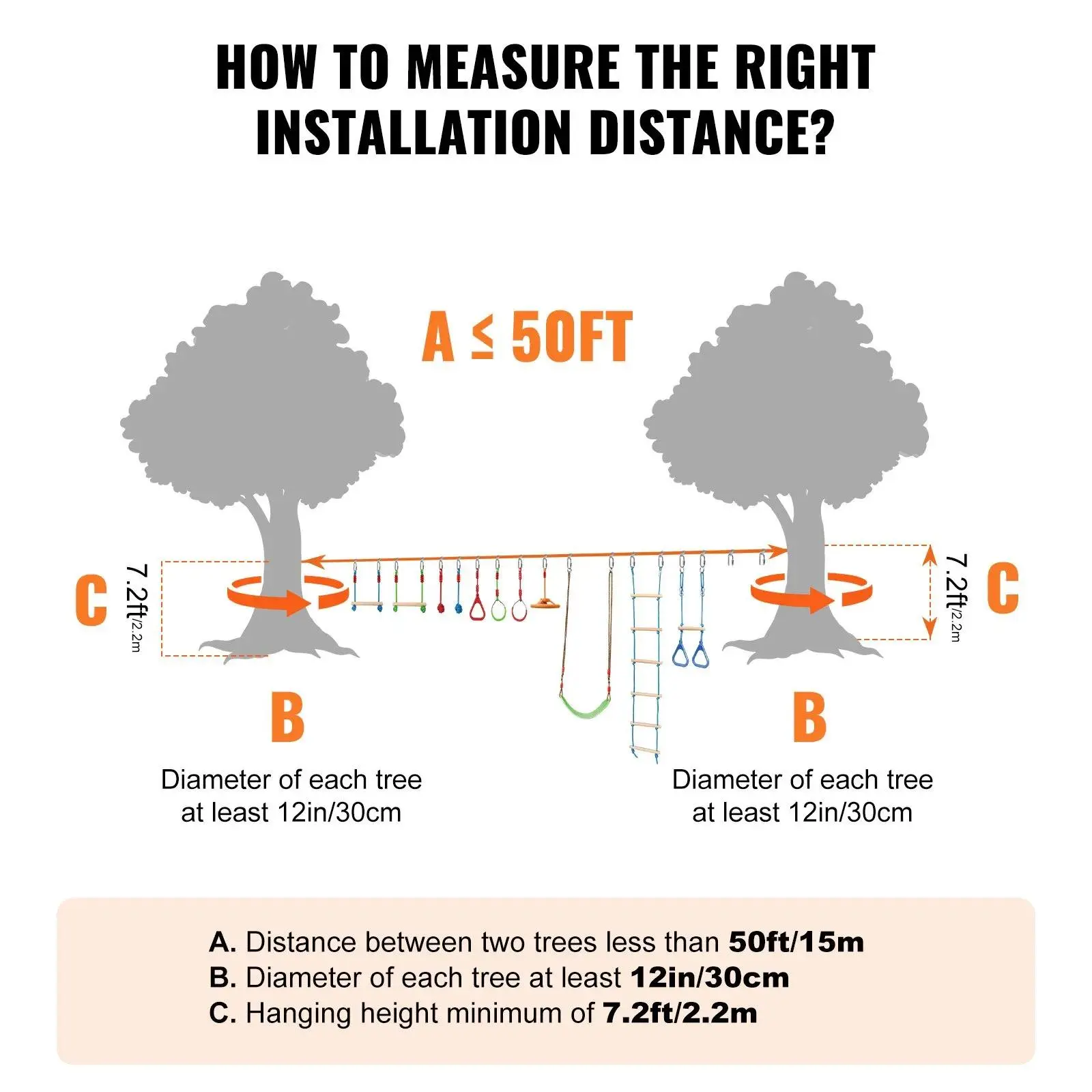 ·Quick Installation and Disassembly: The outdoor playset equipment can be assembled in just 5 minutes. There's no need for a wide flat area in your yard; just fix it between two trees or poles 20 to 40 feet apart to start customizing your obstacle challenge game! It's an ideal alternative to traditional playgrounds, offering a convenient and flexible backyard challenge game for children of various ages and skill levels.