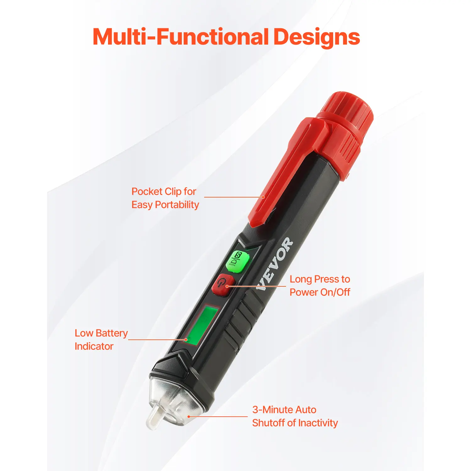 • User-Friendly Designs: This non-contact voltage tester features a pocket clip for easy portability and a low battery indicator that provides a timely reminder to replace the battery. And the 3-minute auto shutoff function helps conserve battery energy, making it a reliable and practical tool for voltage inspections.