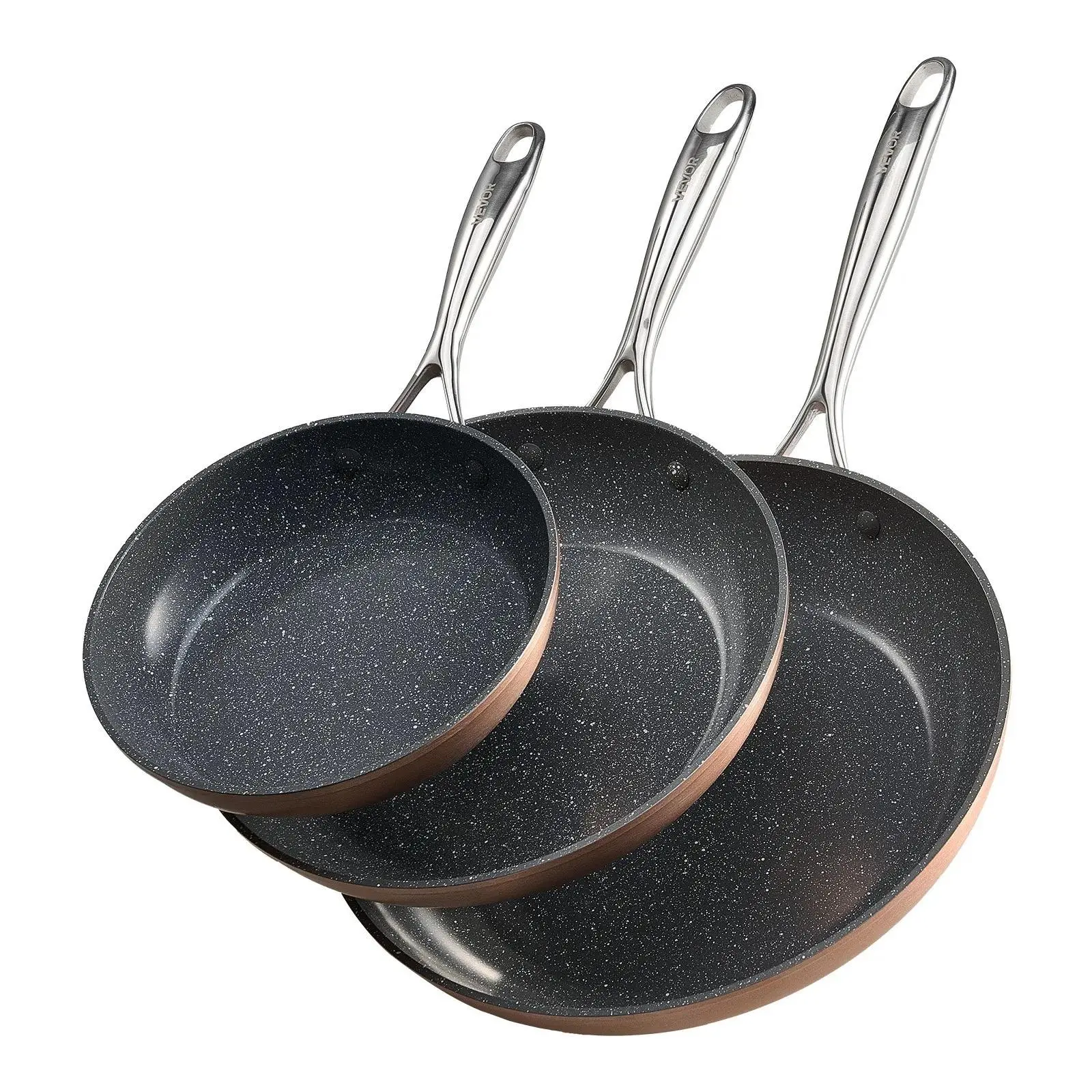 The VEVOR set is designed for multiple cooking methods. Use it on ovens, gas, electric, or induction cooktops. The ceramic nonstick coating ensures even heating and prevents food from sticking. The set includes three sizes, catering to various cooking needs. Enjoy the convenience of a single pan for multiple dishes.