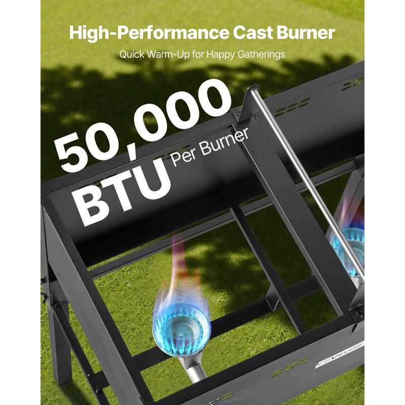 • Powerful Two 50,000BTU Burners: The propane fryer is equipped with two cast burners (50,000 BTU each) with thermometer– rapid heat-up and stable temp control outdoor. Get frying faster for efficient outdoor meals