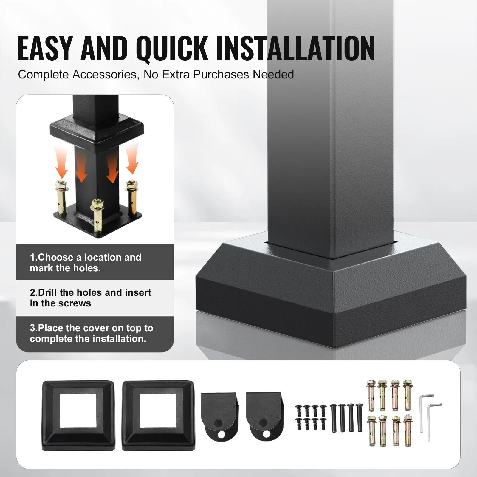 • Sturdy Accessories: We provide a complete set of installation accessories, including screws, nuts, galvanized anti-rust expansion bolts, and metal anchors for solid support at both ends, ensuring a smooth and secure installation