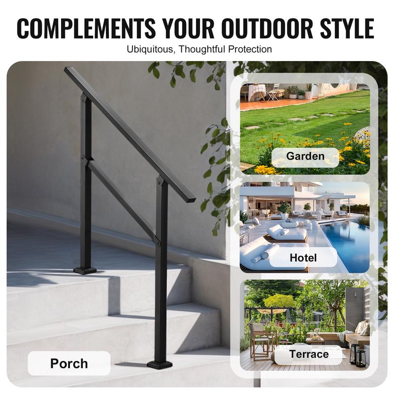 • Fits 2-3 Steps: Our handrail is suitable for 2-3 step transitions, with an adjustable angle range of 0 to 40 degrees, perfect for most door steps, garage entrances, and garden railings