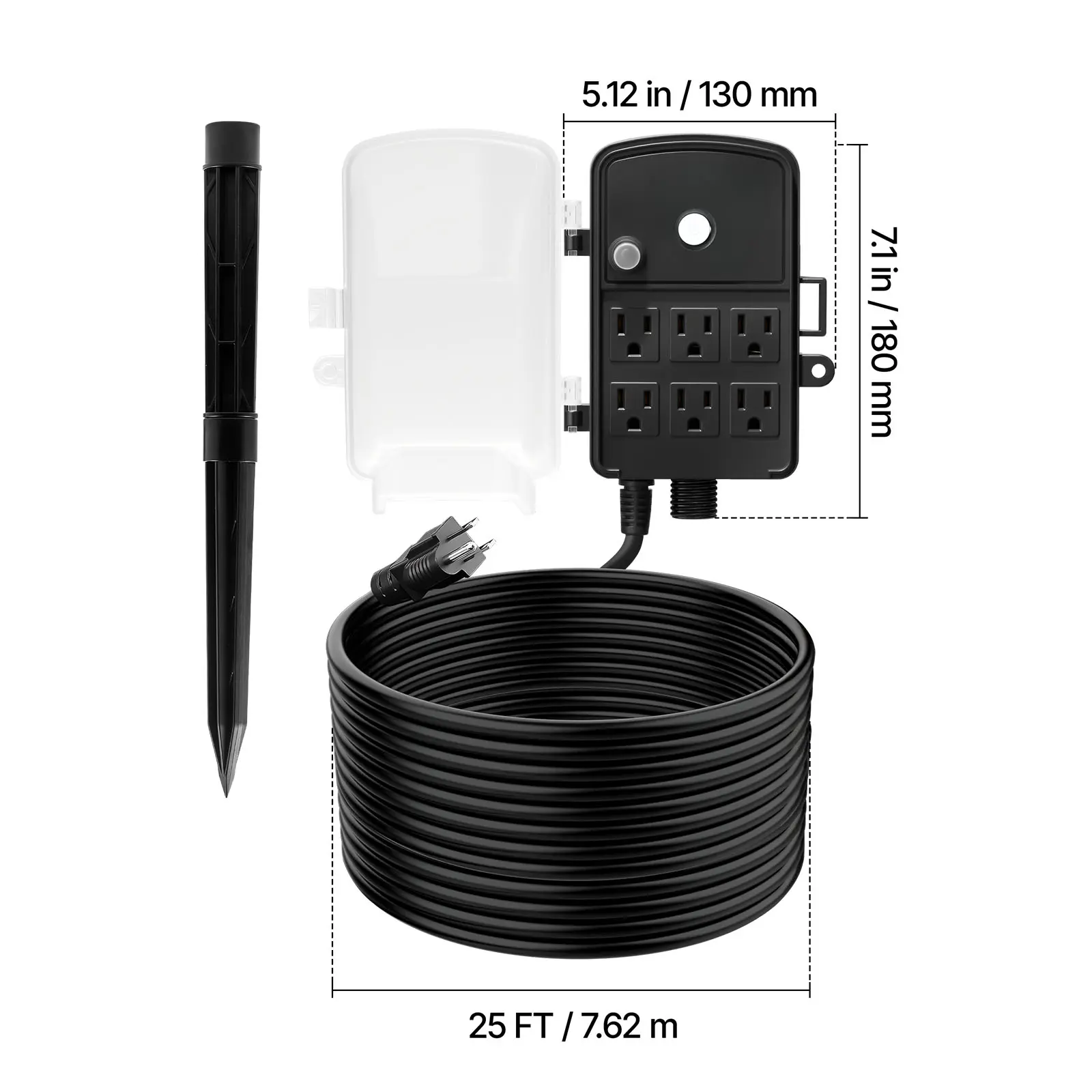 • Six Power Outlets: Turn one outlet into six with this outdoor power stake. It securely handles up to 15A/1875W, so you can run multiple devices at once without constantly plugging and unplugging