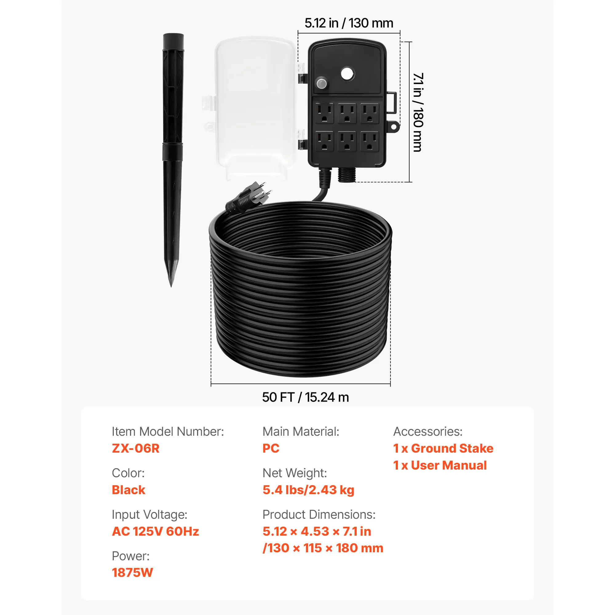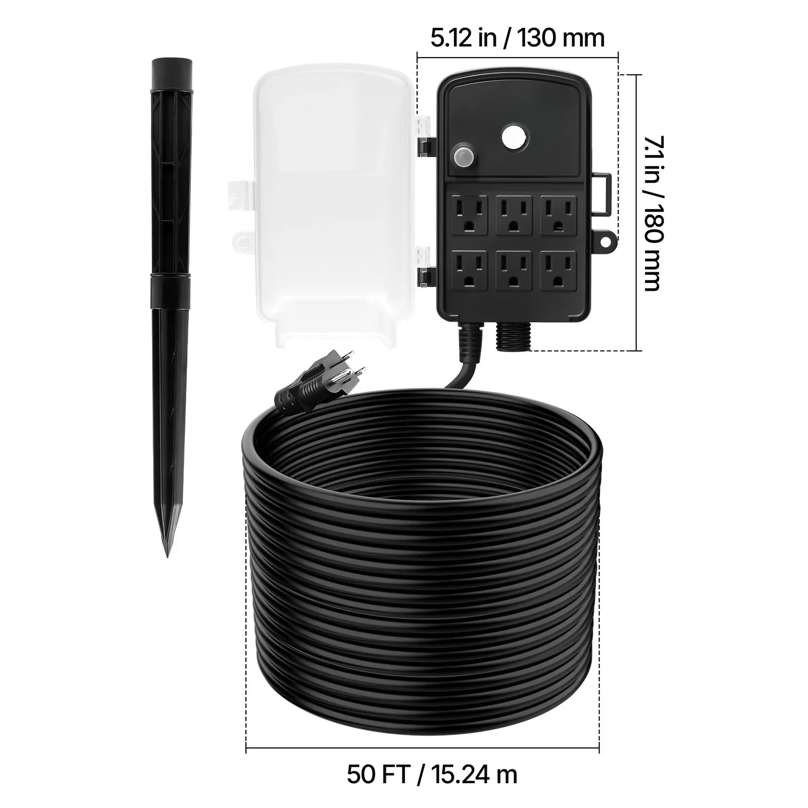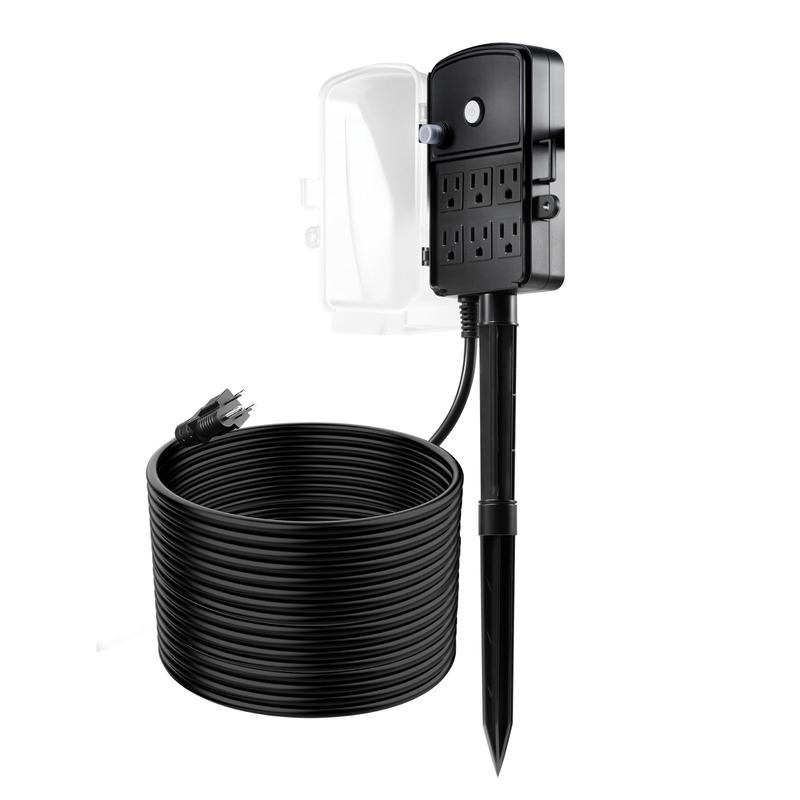 • Six Power Outlets: Turn one outlet into six with this outdoor power stake. It securely handles up to 15A/1875W, so you can run multiple devices at once without constantly plugging and unplugging