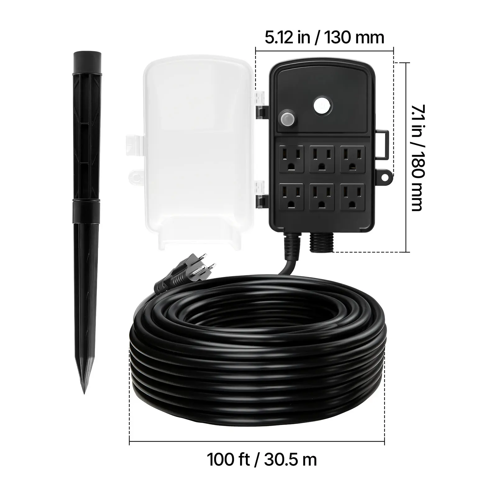 • 100 ft Extension Cord: No more struggling with short cables. The extension cord with power stake gives you the reach you need to power backyard parties, patio lights, garden sprinklers, Christmas lights, and holiday displays with ease