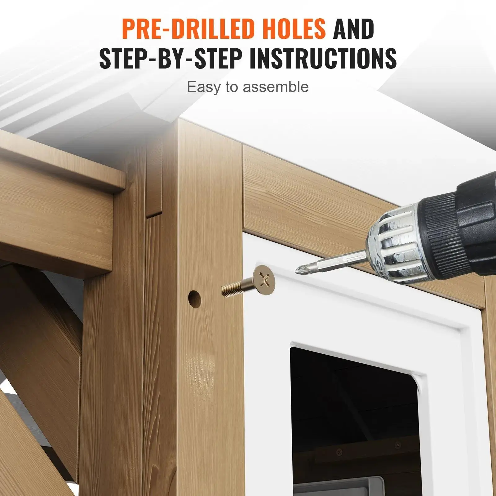 The playhouse is made of natural cedar wood, known for its sturdiness, durability, corrosion-resistance, and sun-resistance. The wood surface is treated with outdoor water-based paint, making it suitable for harsh weather conditions.