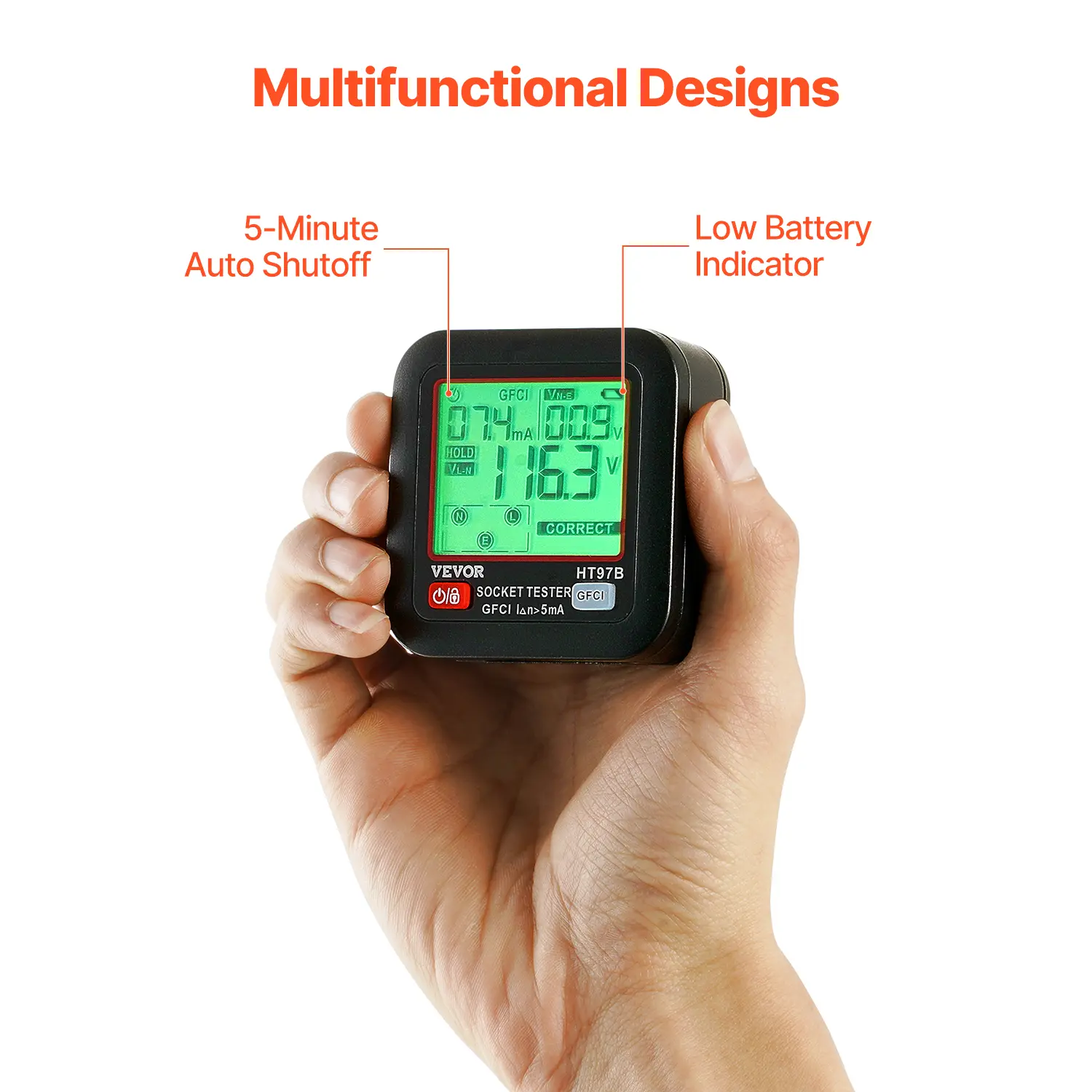 • User-Friendly Designs: This portable socket tester detector features a low battery indicator that provides a timely reminder to replace the battery. And the 5-minute auto shutoff function helps conserve battery energy, making it a reliable and practical tool for electrical inspections.