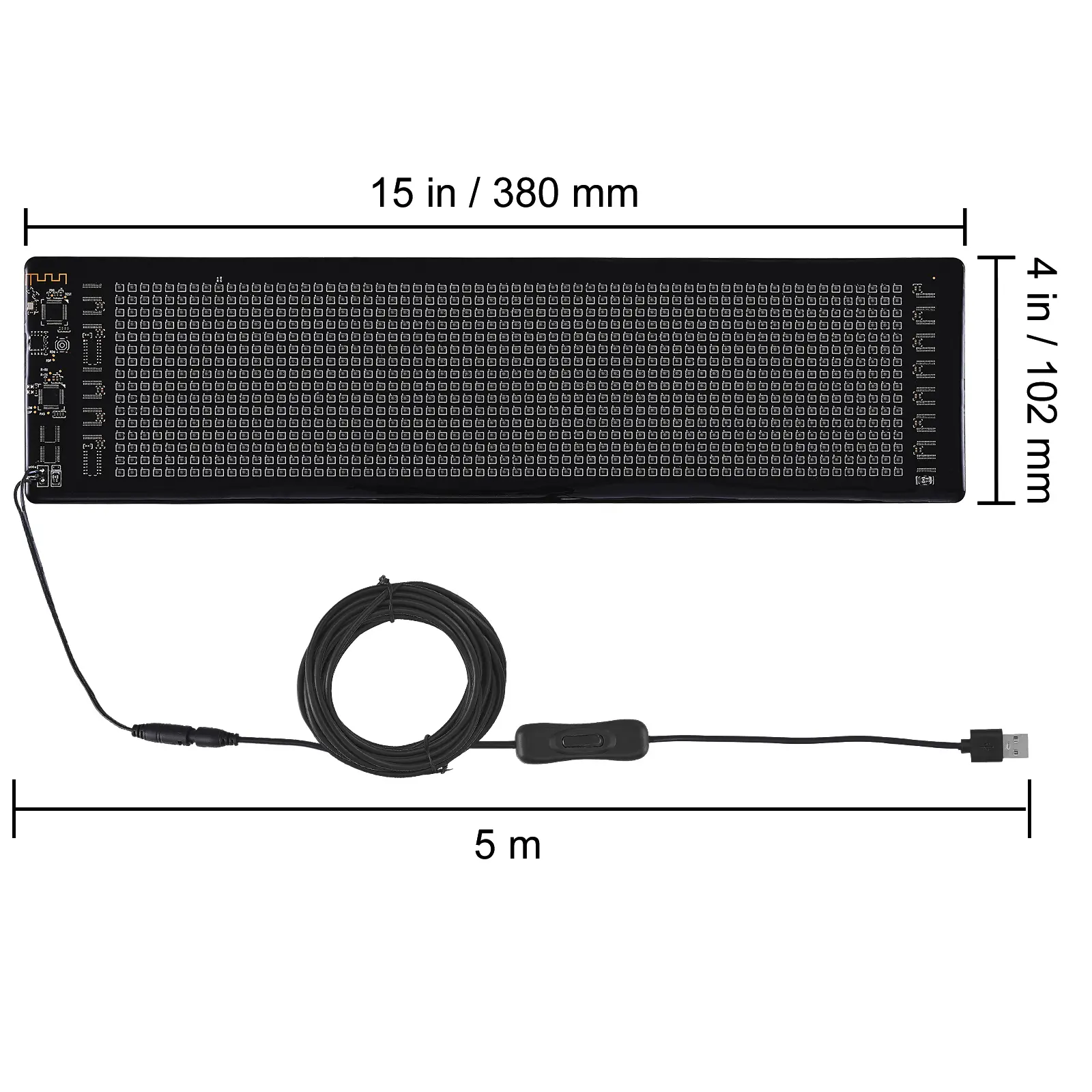 • Bright Full-color Display: The bright and large sign makes it easy for people to see the advertisement effects even during the day, capable of displaying any color and image. With a pixel pitch of P5 and a display resolution of 16x64 pixels, it's mainly used for taxi displays, effectively enhancing your visibility in malls, supermarkets, and storefronts across various commercial settings. Enhanced power supply quality provides stable power to prevent the lights from not working after some time and avoids instability in LED lights due to insufficient power supply.