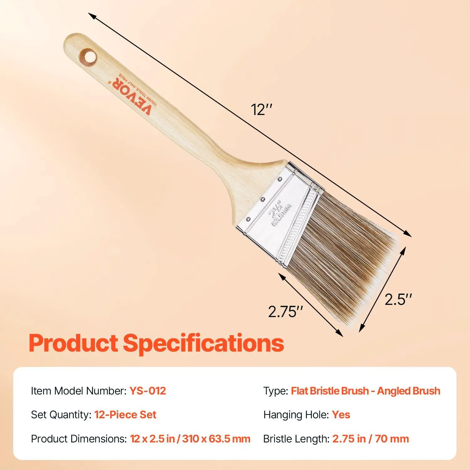 ·Paint Brush Set: The wall paint brushes include 12 angled 2.5-inch brushes designed to meet your everyday painting and replacement needs. Greatly suited for intricate work on corners and edges, ensuring a smooth and flawless finish.
